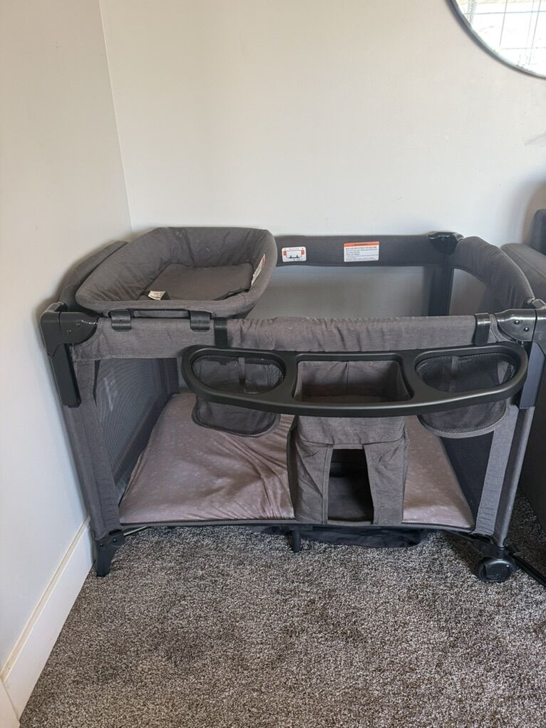 ApplePayBought last year and used with 1 baby. This car seat and caddy are highly rated and super convenient. I chose this system over Doona after a lot of research and it was a great choice. I also have a pack-n-play that includes all attachments to use with an infant and it can be attached to use as bedside sleeper. (Asking $50 but additional $25 if purchasing with car seat system).