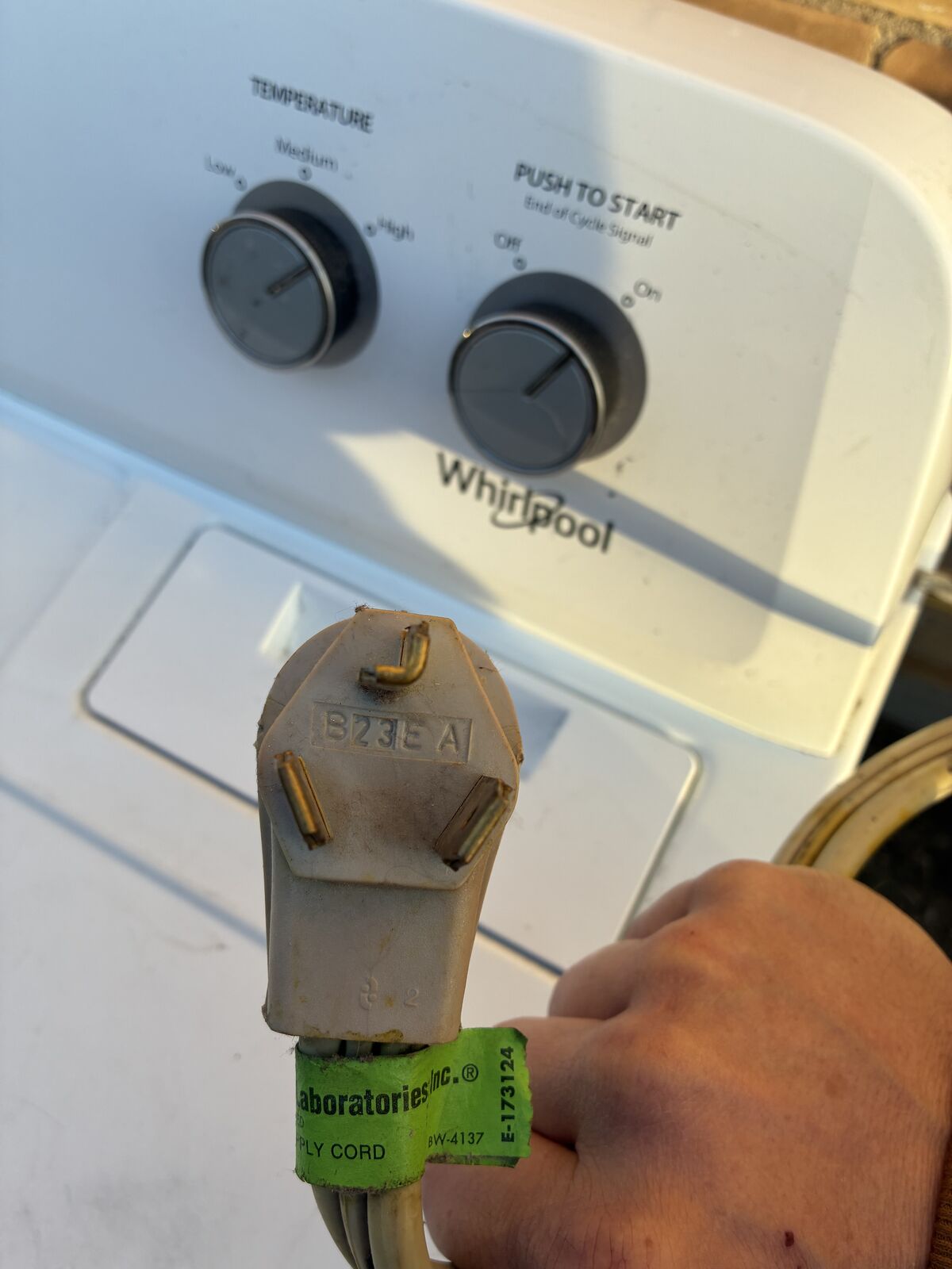 Whirlpool electric dryer. I bought this about six years ago. We just installed a new matching set. The wife wanted new.