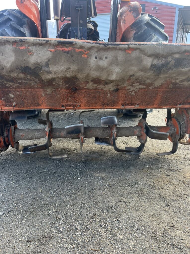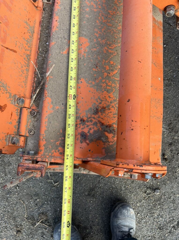 We use it very frequently the measurements are in the pictures I would trade for one a little bigger that what it is, we put brand new tines on it last year $1000 OBO