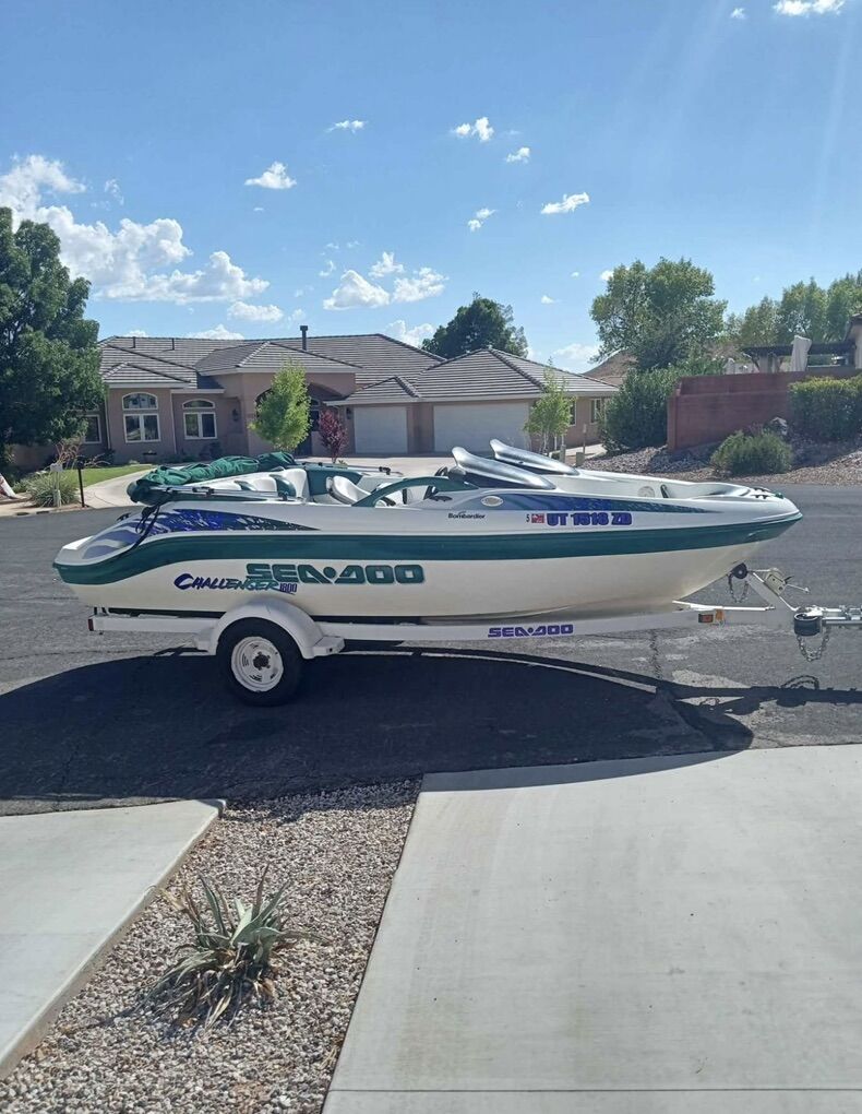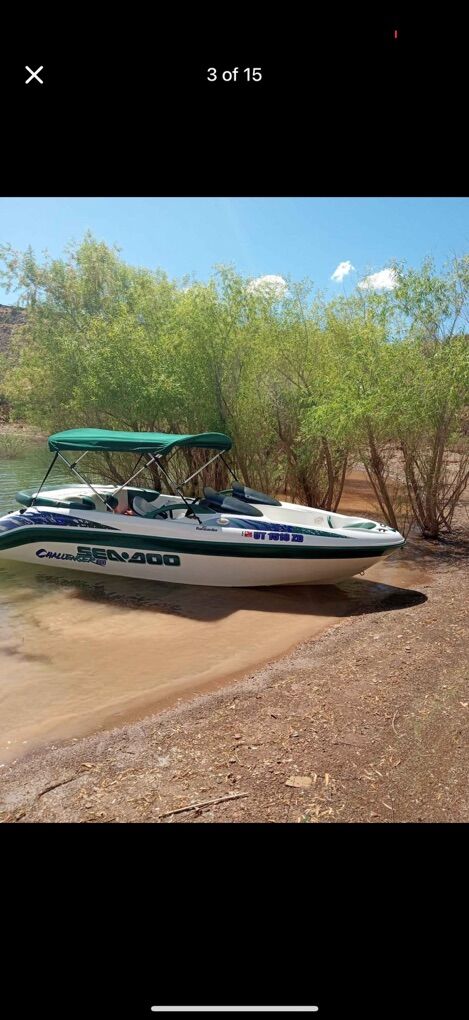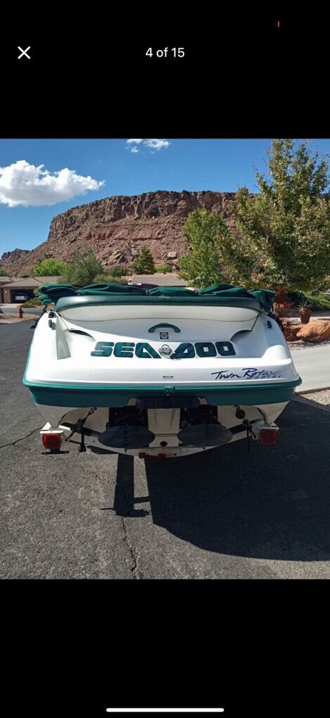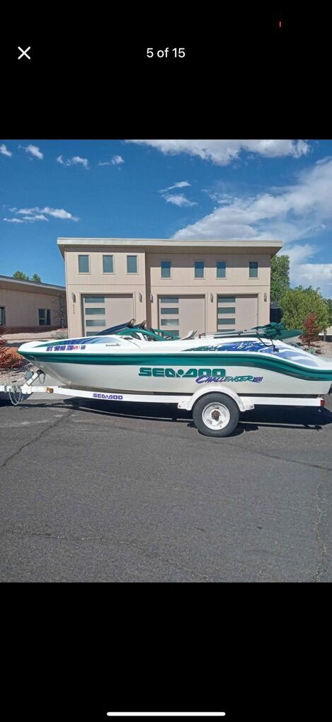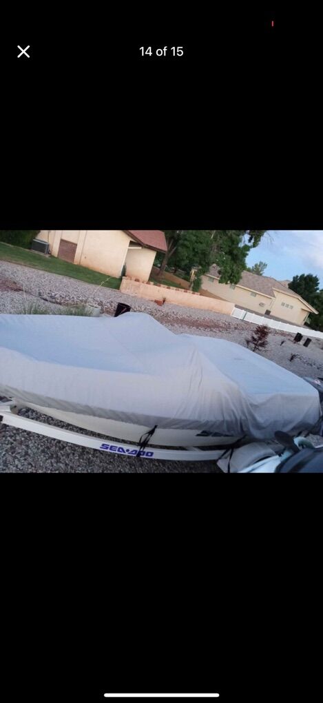 18 foot Dual rotax twin engines Jet boat 220 HP Boat holds 7 people, runs great everything works as it should. Registered and lake ready had It out a few times this year. Will pull tubes and wakeboarders easy Speakers and sound system all work and has a subwoofer Has new interior, new ware rings, new impellers all less than 15 hours ago. Brand new tires, trailer is in great condition, just put new pressure treated wood on the trailer but did have one of the fenders fall off the trailer so it is missing the one on the passenger side Will come with everything you need to go boating including life jackets Have videos of it running on the lake just the other day and can send more pictures just lmk