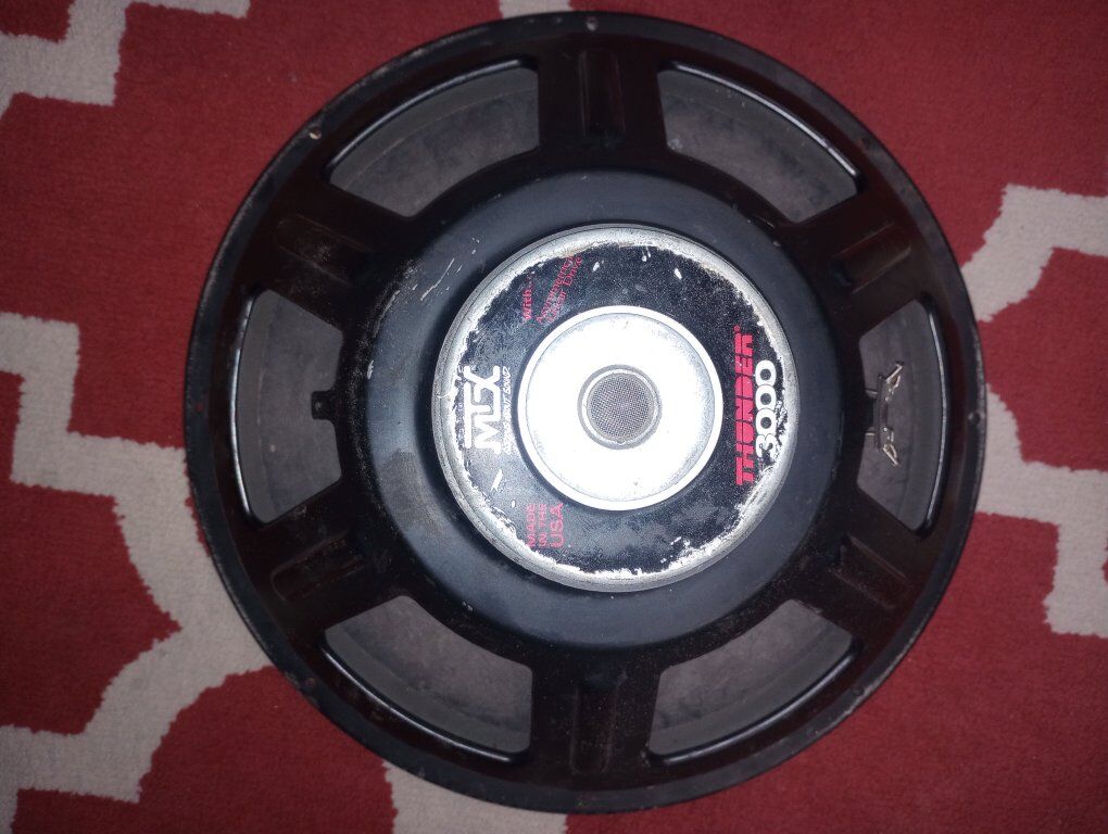 CashApp15" MTX subwoofer old school 250 RMS and 600 w peak 4 ohm sub single voice coil if u like or want low bass that doesn't take the power newer subwoofers take to run then this is a great fit for u I can build a different style box or a box to fit where u need it to I have the box tuned about 34htz and sounds great so get at me and let's make a deal.