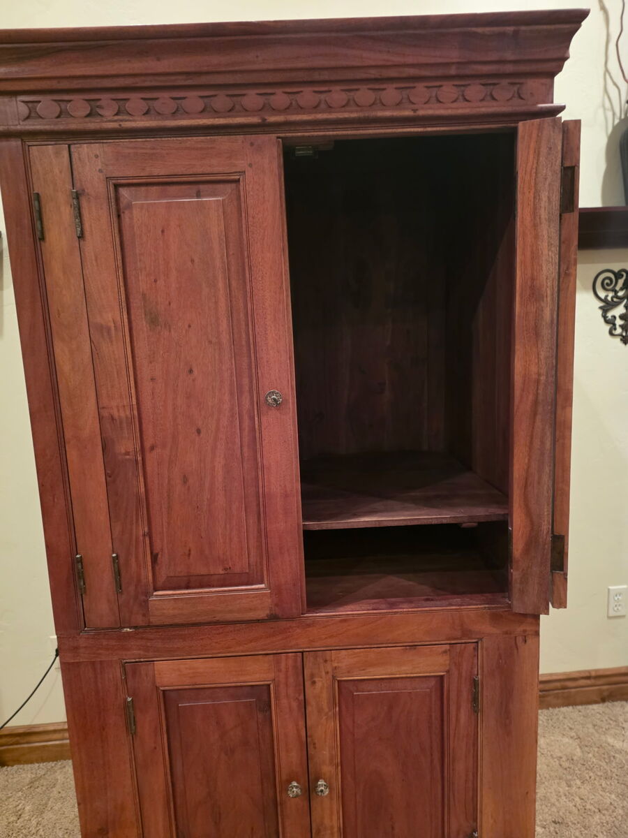 VenmoBeautiful solid rosewood armoire, not veneer, not MDF, not particle board. This is a heavy, well-built, heirloom-quality cabinet with rich natural grain and classic craftsmanship.