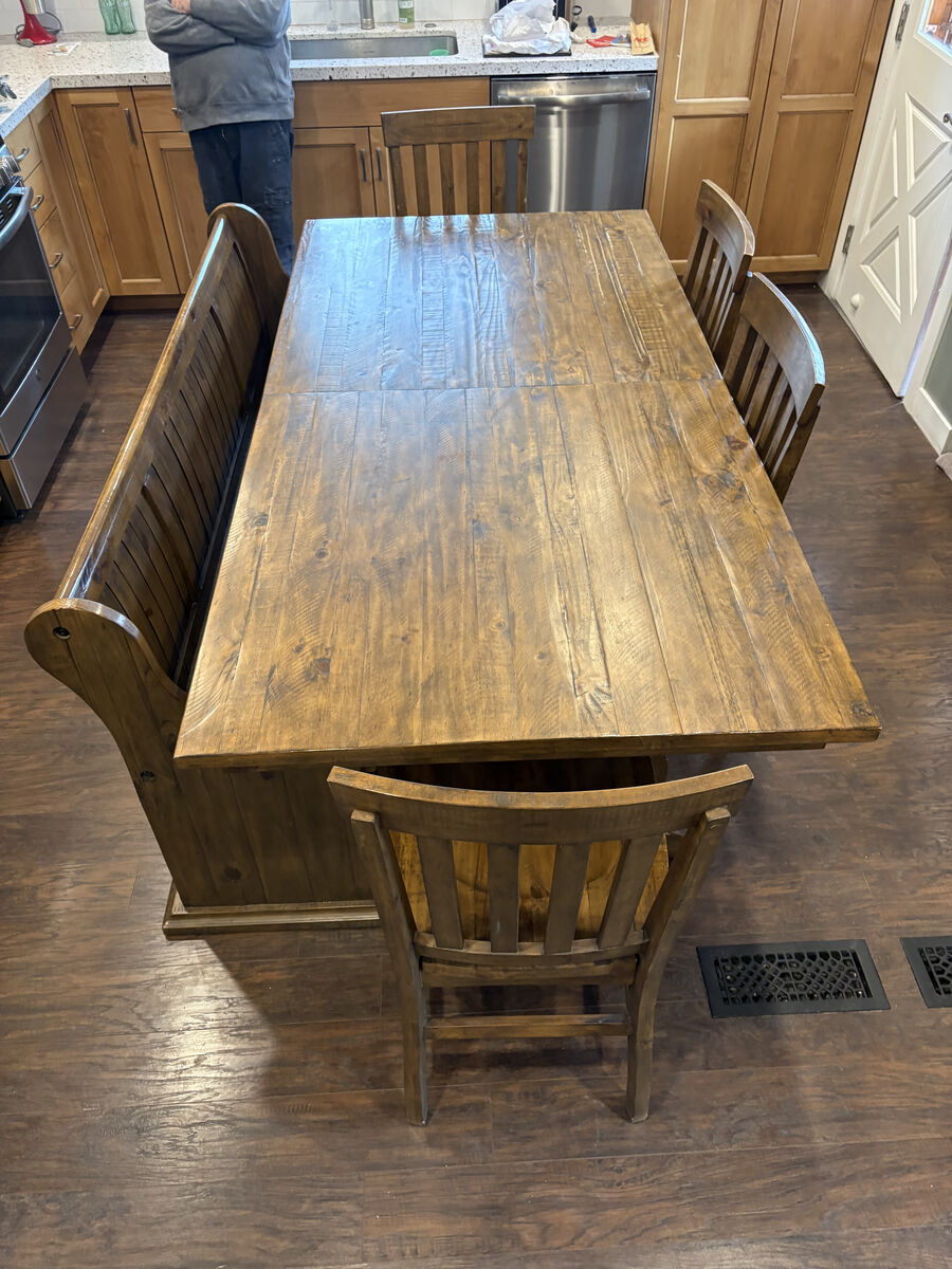 VenmoThis Dining Table comes with a bench and 6 chairs. Table expands to seat all guest. Has a nice rustic vibe