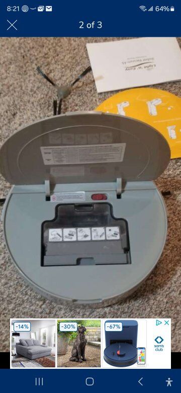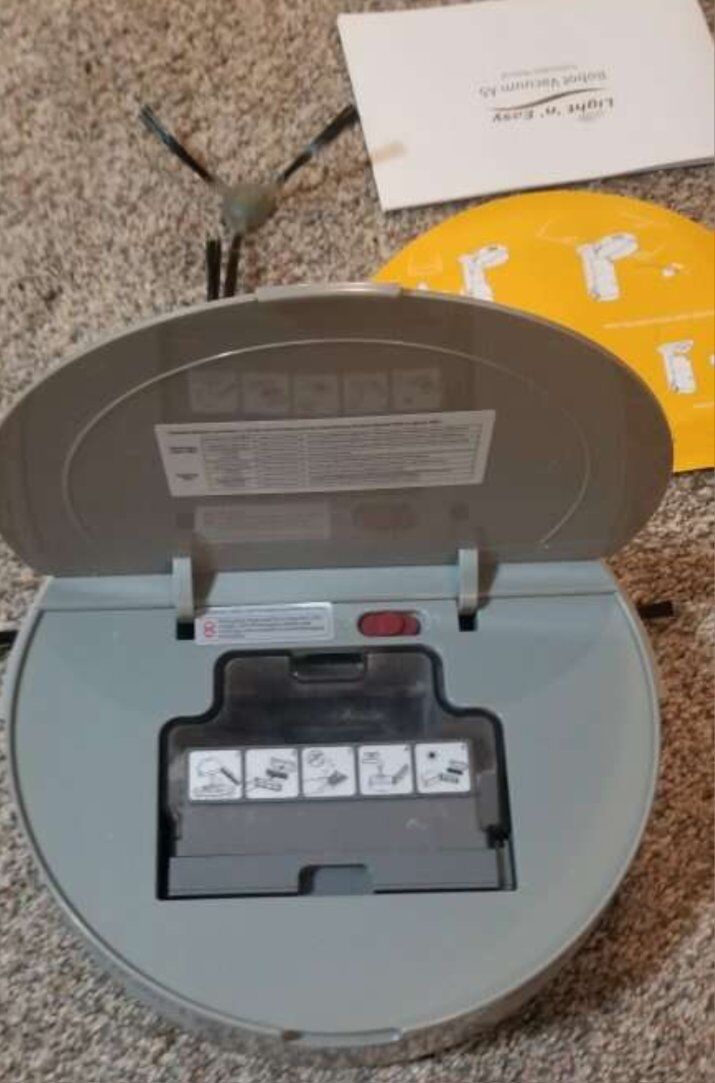 Light-n-Easy Robot Vacuum Has remote control for instant operation or can be used to set up schedules for independant operation.You can choose either random or row pattern for the vacuum to follow Charging unit has a canister that removes and stores floor debris. Canister empties itself with the simple push of a button. No Venmo, cash only. No shipping
