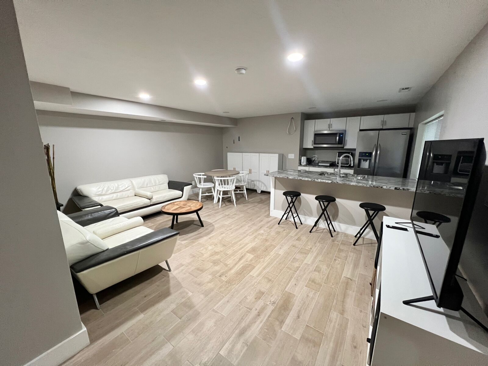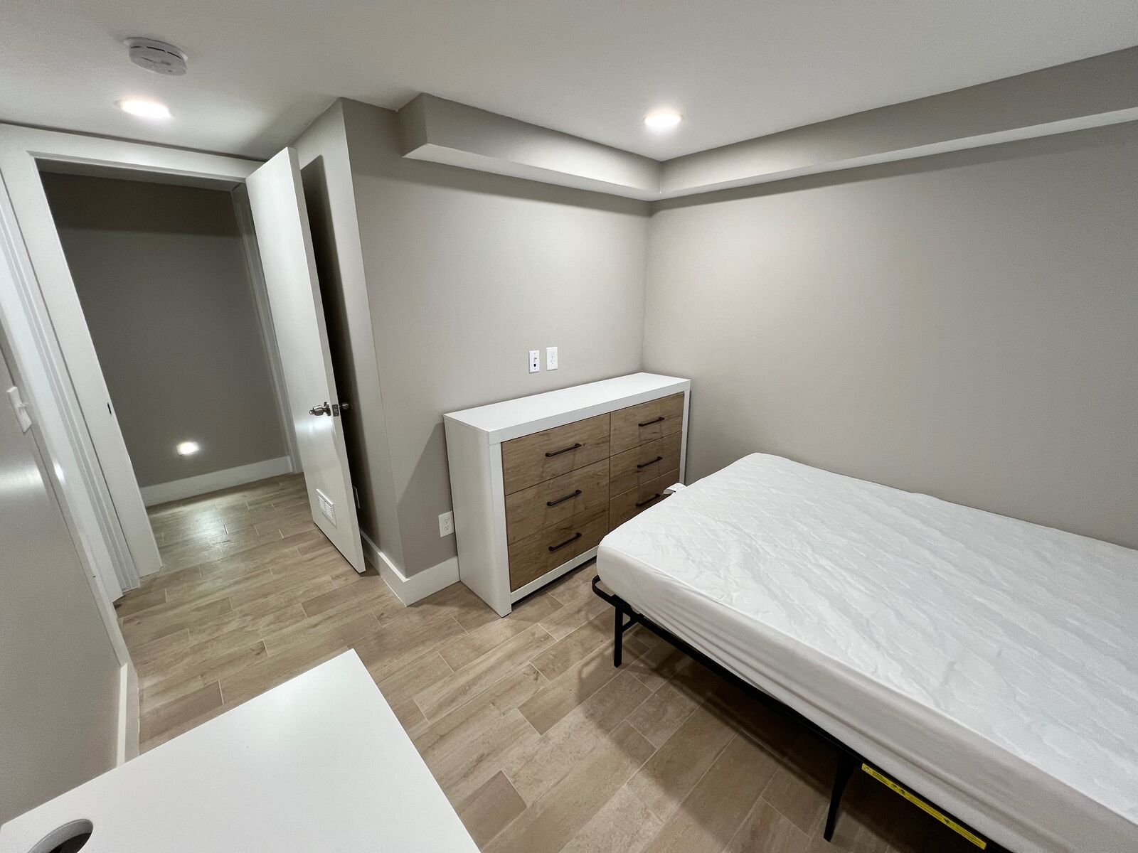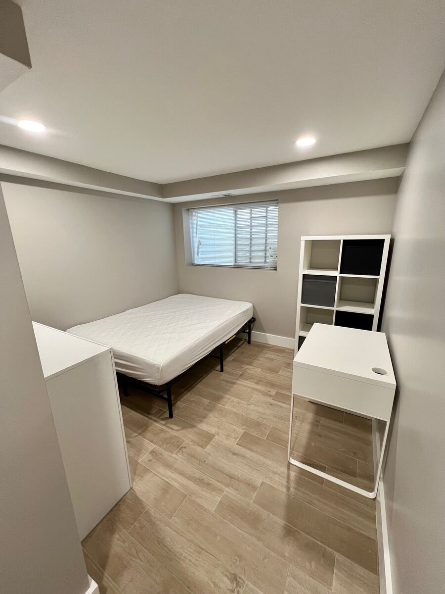 The house has 3 rooms, 2 bathrooms, laundry room, nice living and kitchen area. The room is furnished with a Full-size bed, dresser, wall mirror, desk w/ chair, cube storage, and closet. Additional storage space is available in Laundry Room.