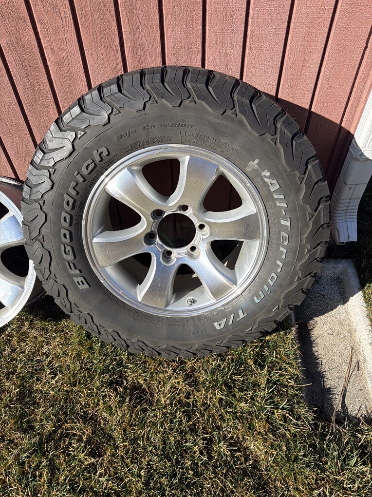 ApplePayTaken off a 4Runner. Great shape OEM wheels spare has a BF Goodrich AT with about 50% tread