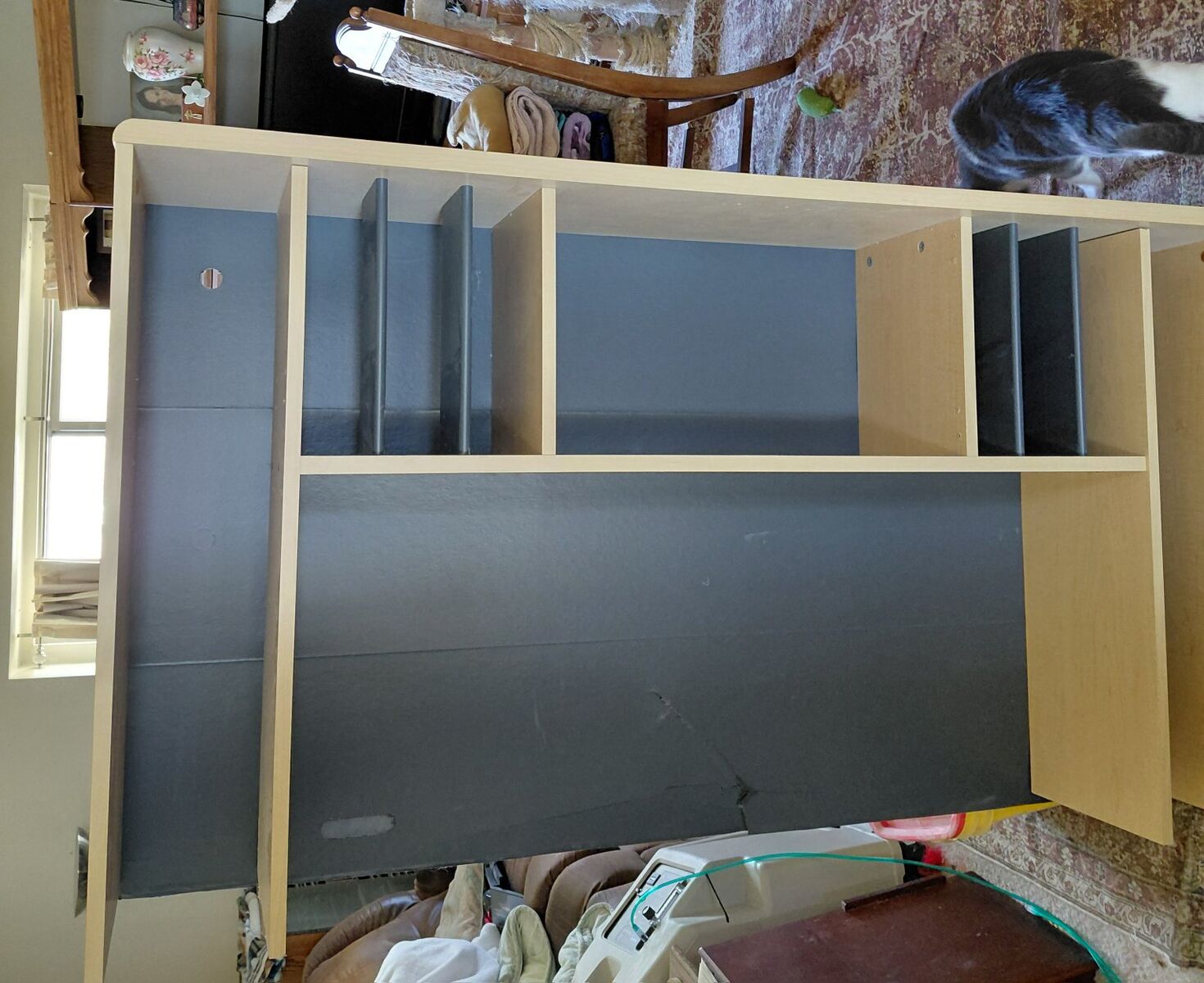 VenmoDesktop Bookcase with some damage to the cardboard back, but still very usable. Fairly heavy. I would suggest two people to load. I might be able to help with that. $35 OBO