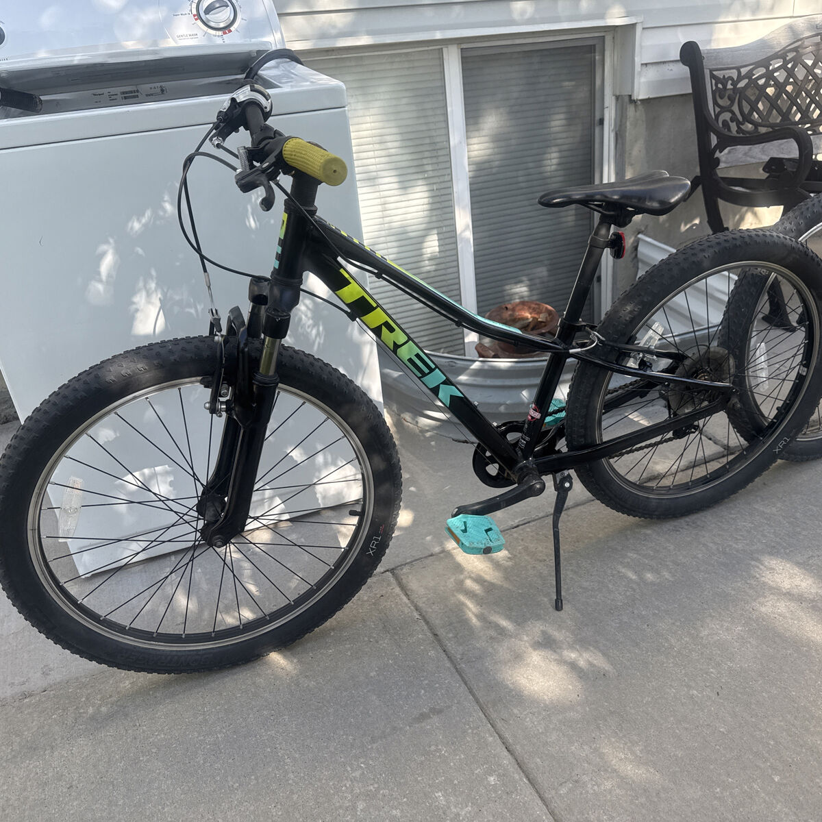 This Bike is still in excellent condition still in excellent shape. Both tires hold air tire size is 24 Seat is good, handle bars are good , pedals are good, Aluminum Frame is still solid & has no cracks, Brakes work great and shifters work great 8 speed & front suspension works great Ride smooth with no issues