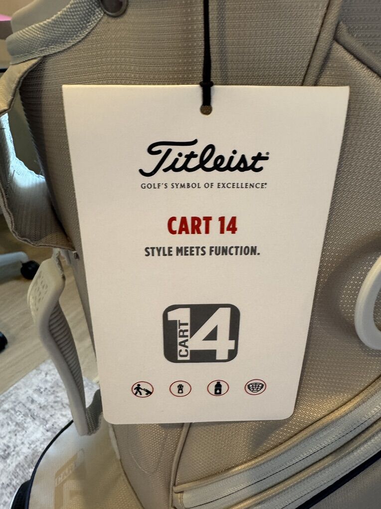 VenmoBrand new with tags Titleist Cart 14 golf bag with cooler pocket. Text is best, thanks!