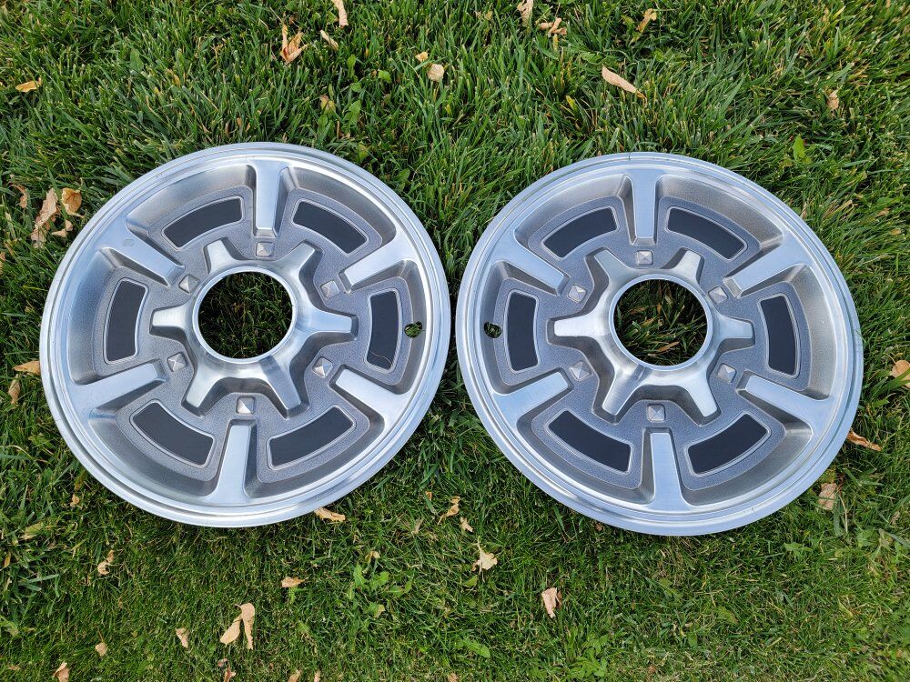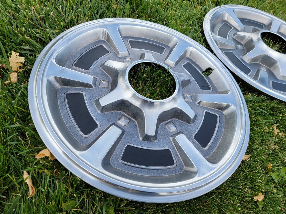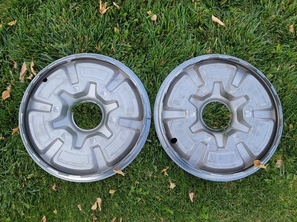 VenmoPair of 1977-87 Chevy & GMC RPO Code PO1 Full Wheel Covers, 15" Front Caps, open 4x4 hub. Excellent set, can't tell if they were ever used, sure look NOS! Some light scratches & imperfections from being boxless and stored. Paint is Great, no fading. ~ $120 shipped in