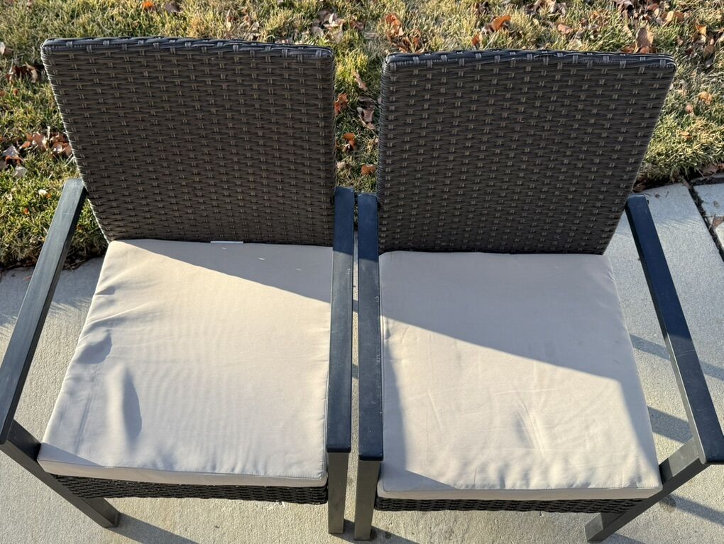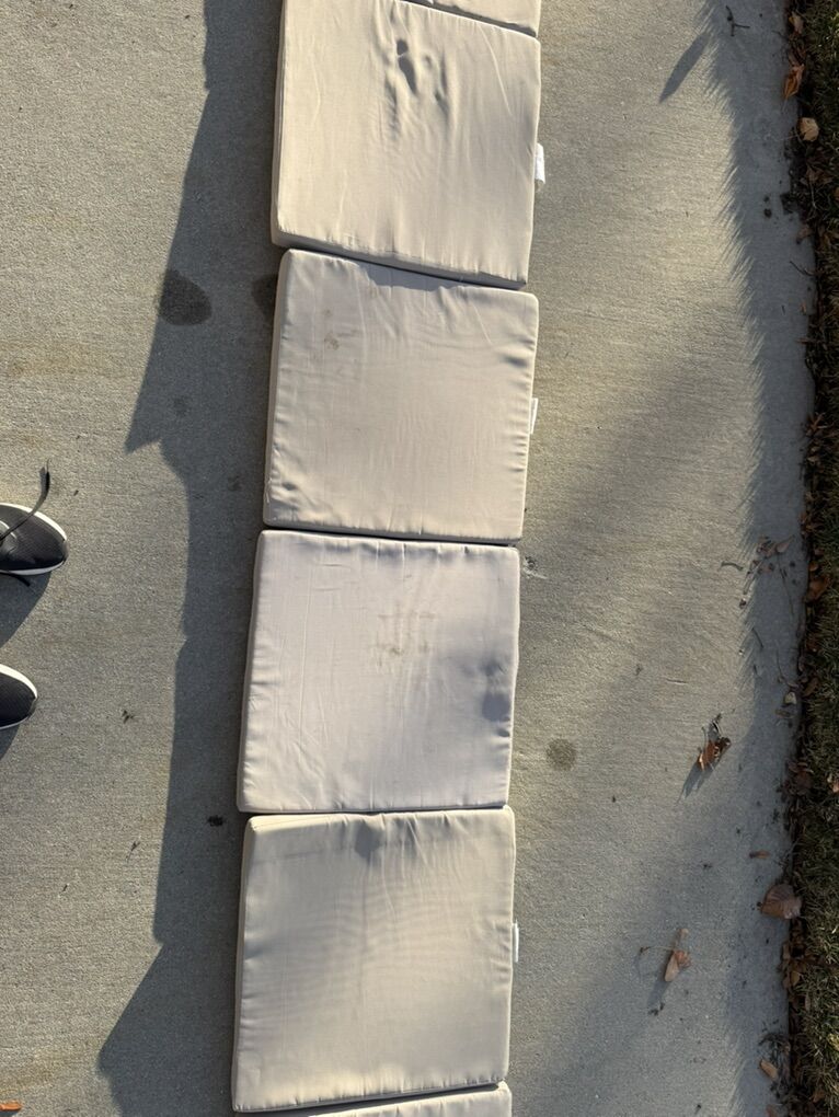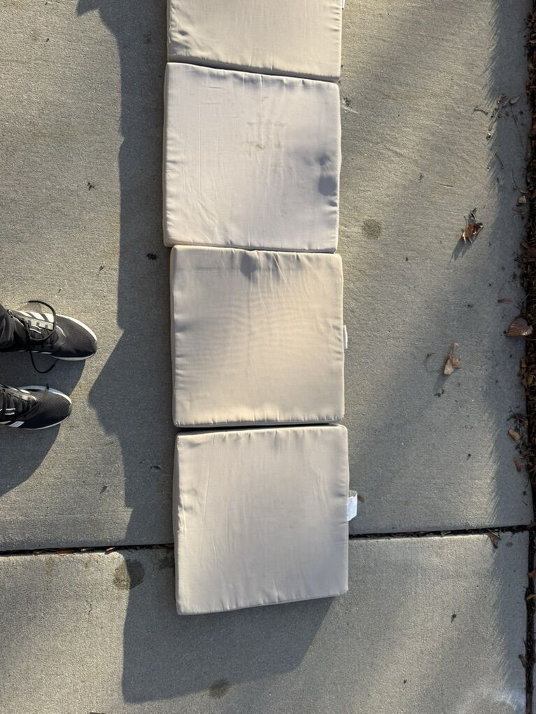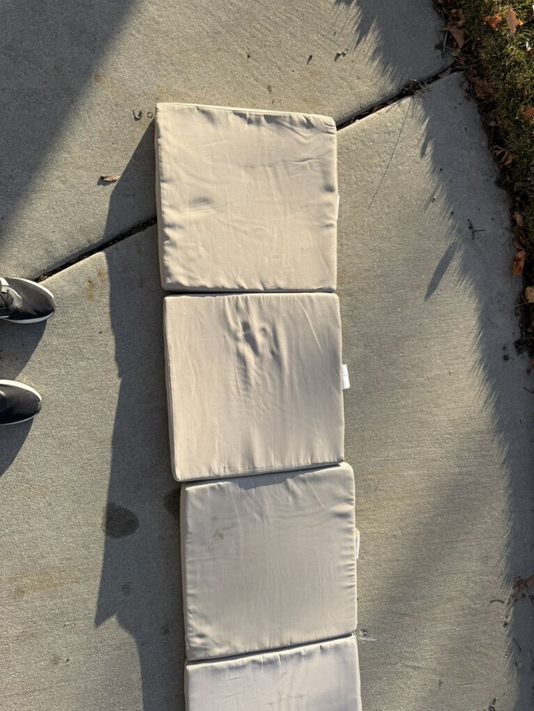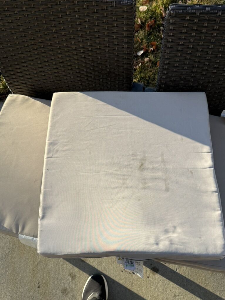 $30 each or $120 for the set. Good to great condition. 2 cushions with minor squirrel bites on one side (see picture). Some cushions with minor weathering/stains (best sides pictured).