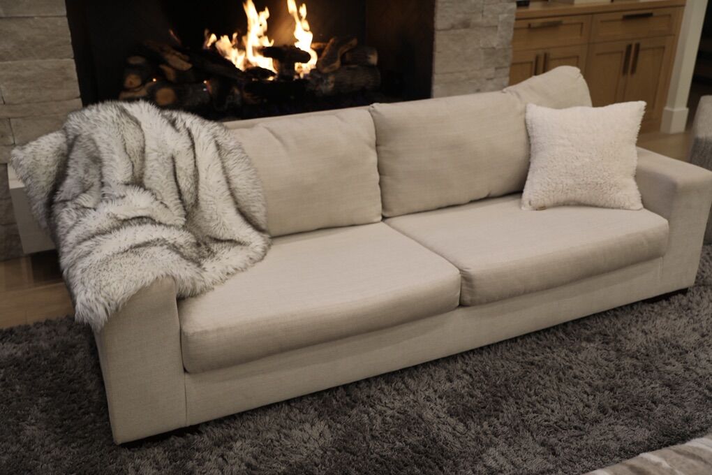 The cushions are comfortable and cozy (not stiff), making this a great comfy couch for relaxing, watching TV, or hosting friends. The neutral color and clean design give it a contemporary / minimalist look that works with almost any home style.