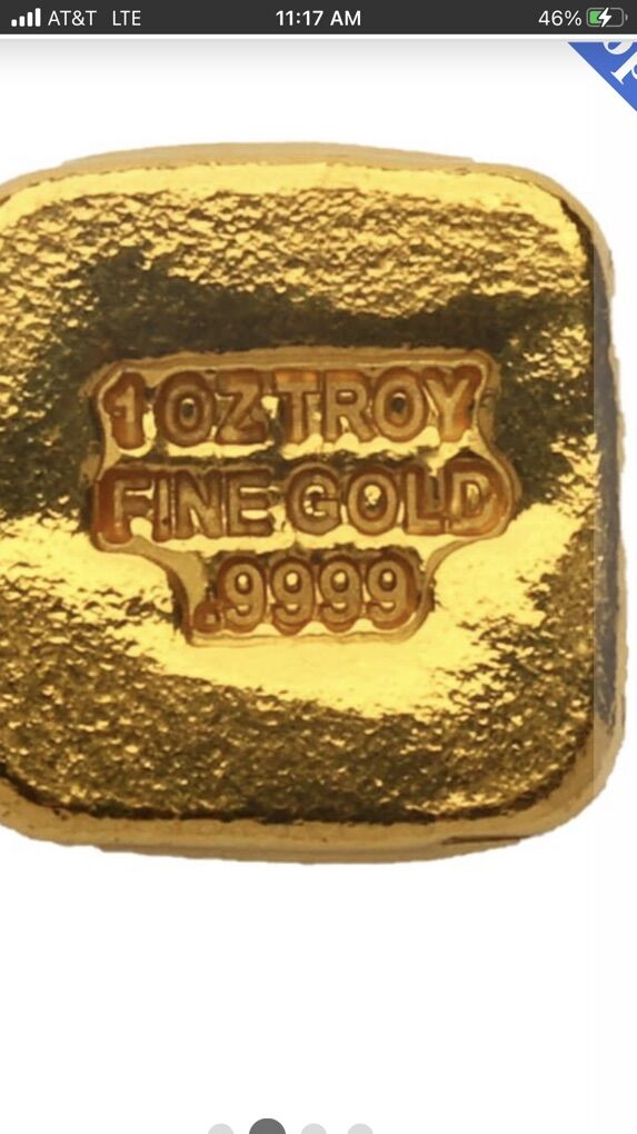 .9999 fine gold 1 oz bar. Beautiful gold in original plastic unopened cover. Asking 75 over spot, also willing to trade for silver without premiums.