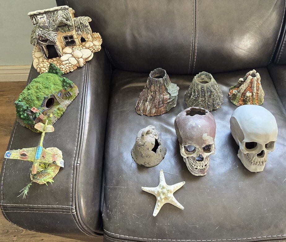DECOR 28" Sunken Ship - $50 26" Sunken Battleship - $50 22" Sunken Submarine - $50 5" Sunken Airplane - $5 Floating Mines - $5 each Skulls - $5 each Volcanoes- $3 each Houses - $5 each