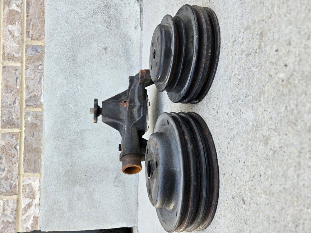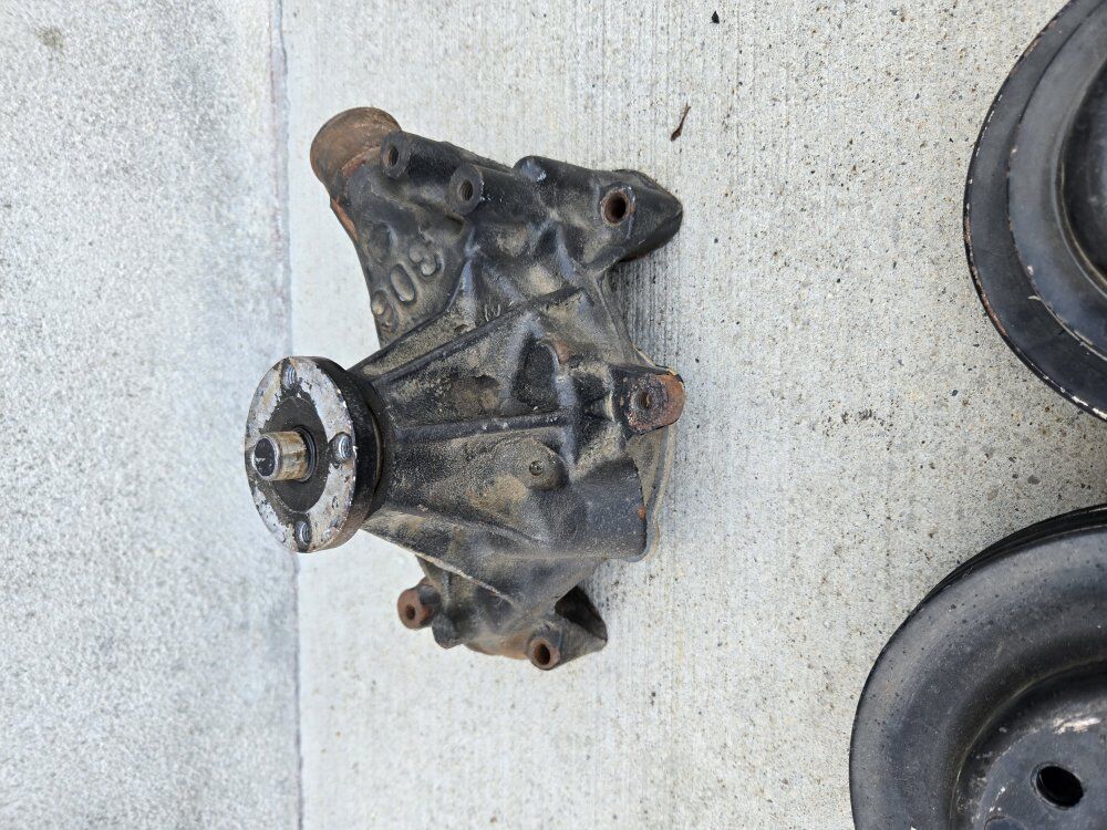 VenmoSBC long water pump off a crate 350 that has ~20k miles. nothing wrong with it. I just swapped it for a period correct short water pump and bullies that lined up with the power steering i added to my truck. includes 3 groove water pump bullies and crank shaft bullies.