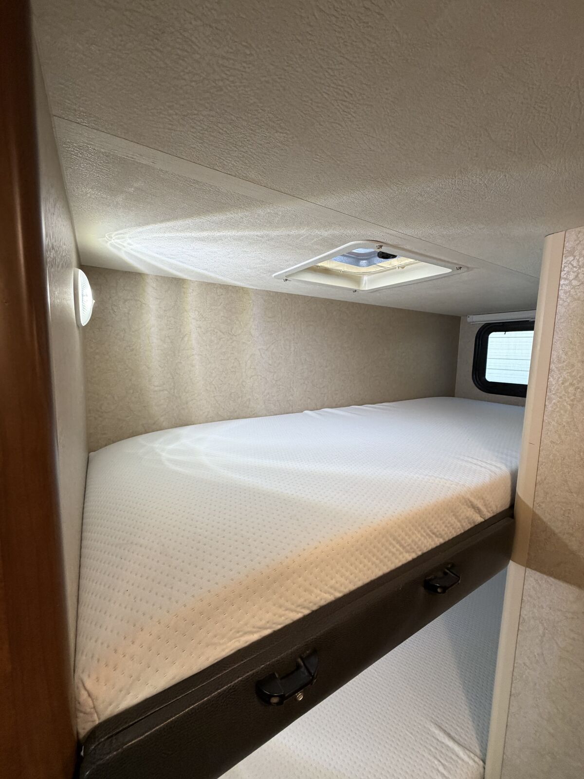 Middle bunk Folds Up for Larger Storage in the Rear!