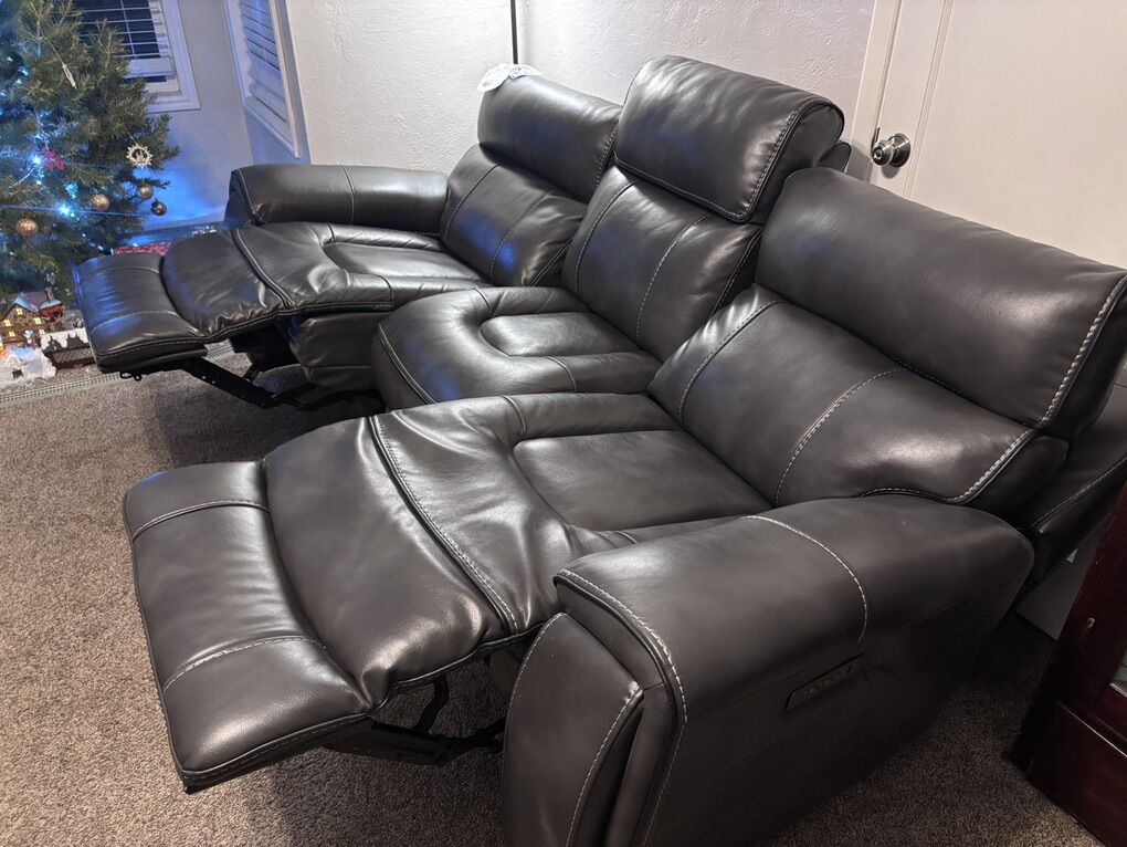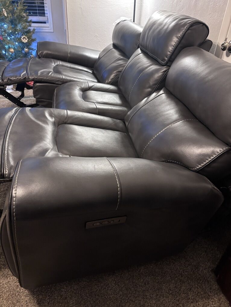 Features: ∙ Dual power recliners with adjustable headrests ∙ Beyond Leather material - super durable and stain resistant (great for families!) ∙ Gray color that goes with everything ∙ Comfortable cushioned seating Dimensions: 41”H x 90”W x 41”D
