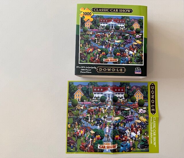 Venmo$10. 1000 Piece Jigsaw Puzzle, Classic Car Show, by Dowdle. Complete. Cash preferred. Pick up only in southwest Orem.