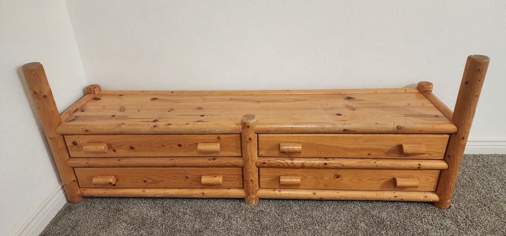 Venmothis king bed set is very sturdy. it comes with king bed frame, 2 nightstands, large body mirror, step stole, very large armoire. everything is in great condition. one night stand has some wear, (pictures above) but does not affect the durability. the second picture is a bench that can attach to the front of the bed.