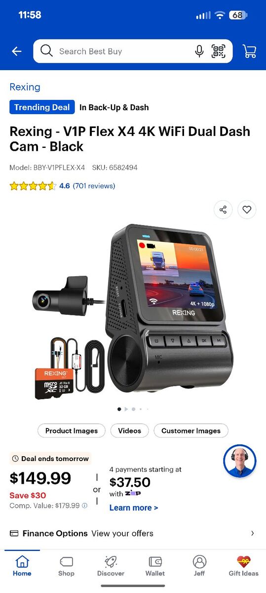 Rexing Dash Cam. I've used this brand in multiple cars and have been very happy with them. This is on sale at Best buy right now for $150