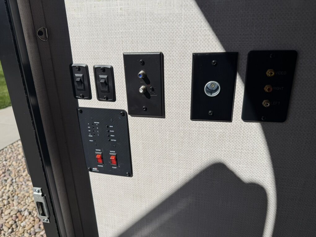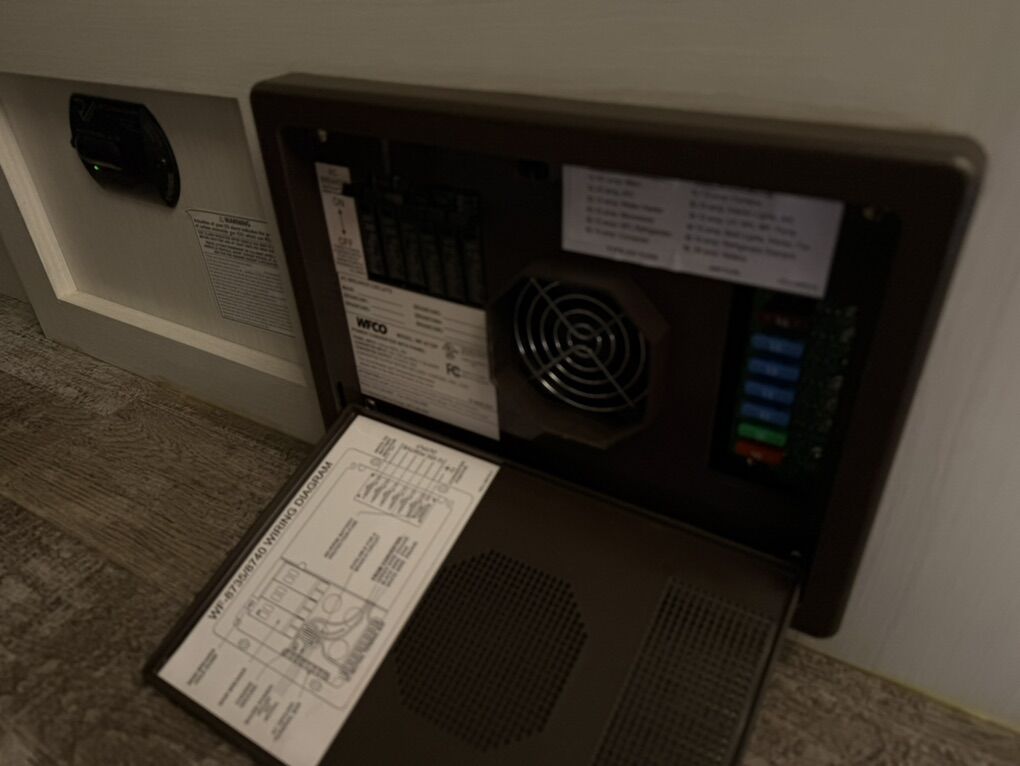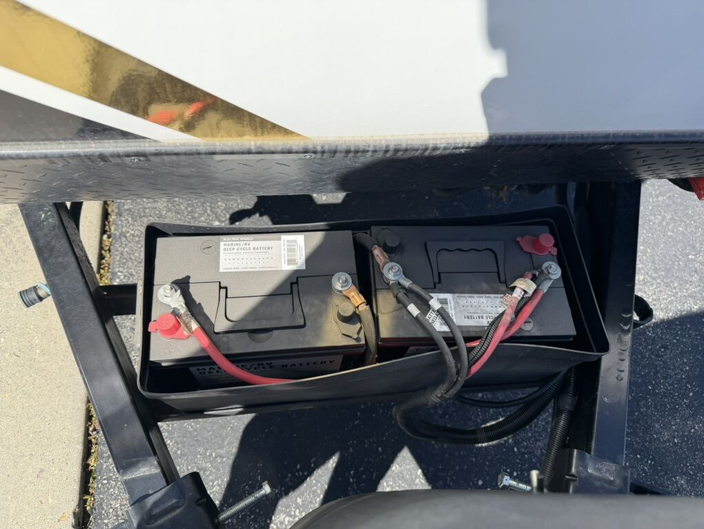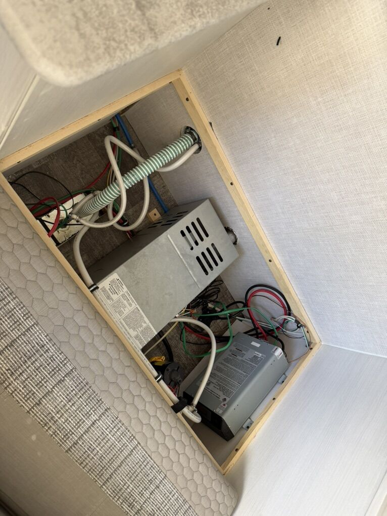 More Info Factory TV was removed and discarded. I felt like it got in the way, and we didn’t use it on the first few trips. Factory spare tire mount was removed and I fabricated a new mount underneath the RPOD. I fabricated a 2 inch receiver to allow bike rack usage. Spare could be moved back to the 2 inch receiver of course. Factory 6v batteries were replaced with two 12v batteries. Everything works, heater, fridge, pump, a/c, solar, you name it.