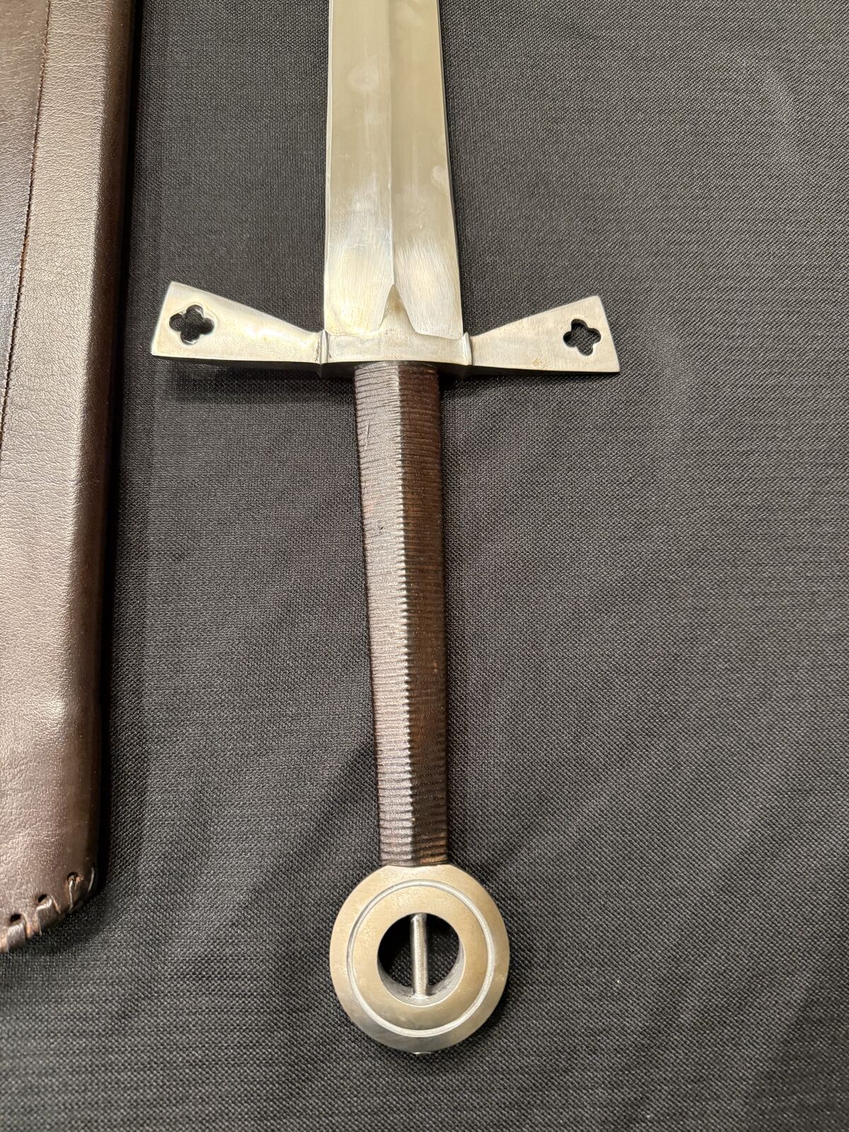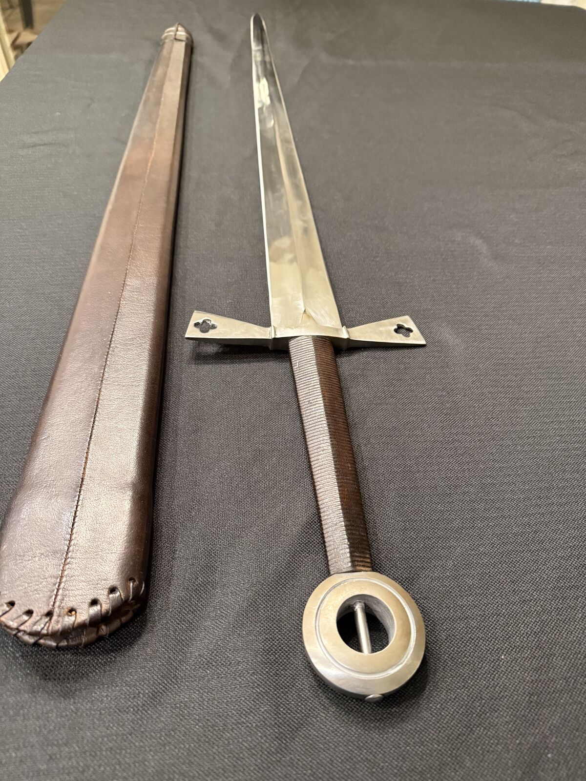 Irish garlic long sword length 46 7/8". Blade length 36 13/16" made from high carbon steel. Has a few small knicks on blade that should sharpen out easily. Kids. 🤦️