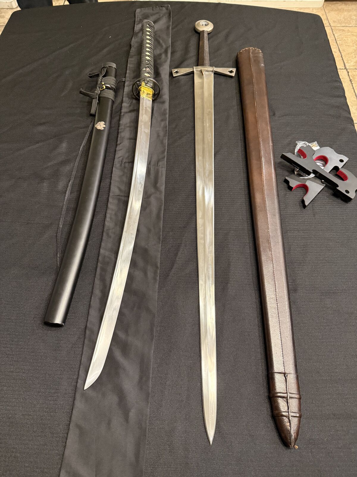 Both blades very sharp. Both in great condition and only handled once and have been in scabbards since. both swords were over $350 when purchased. Asking $200. OBO.