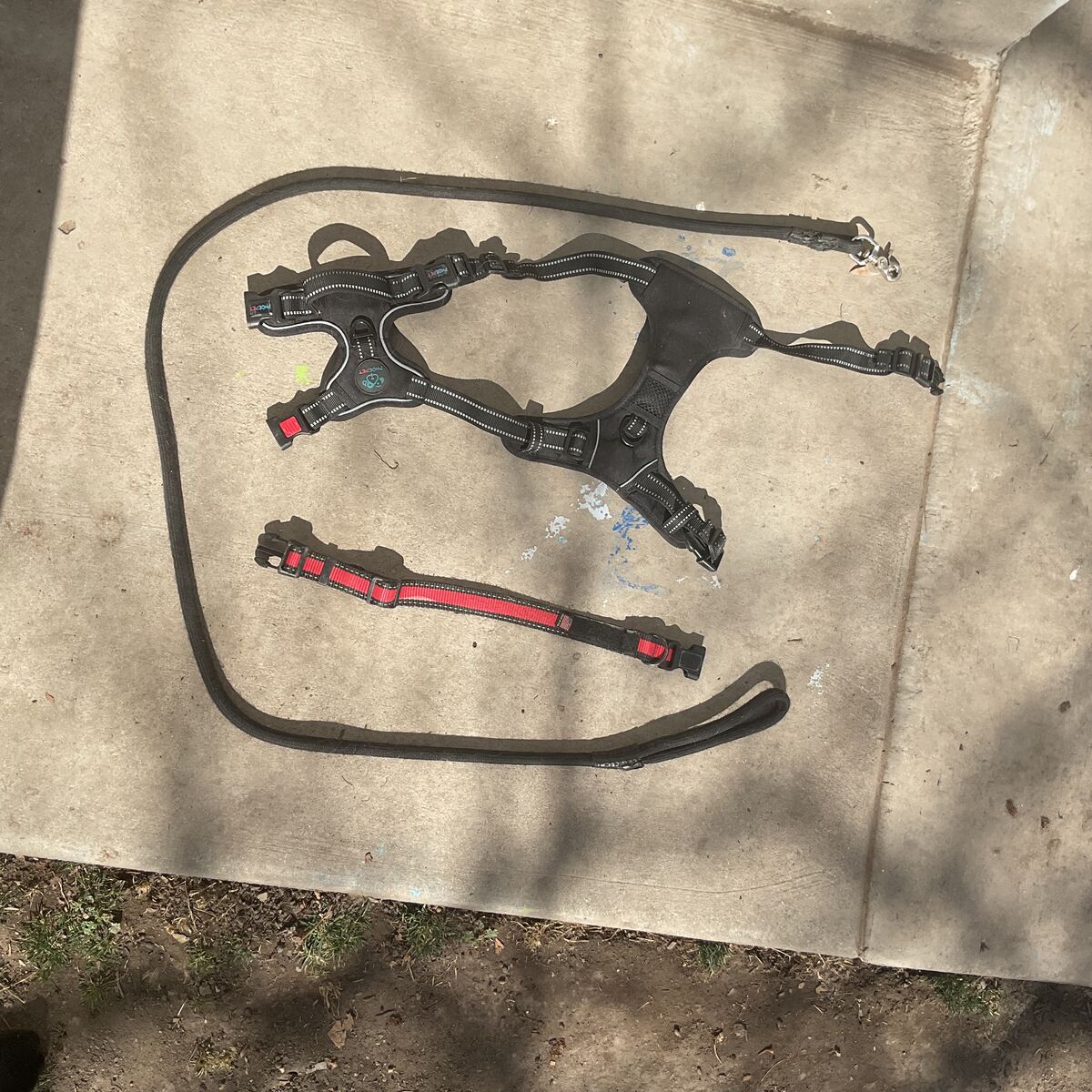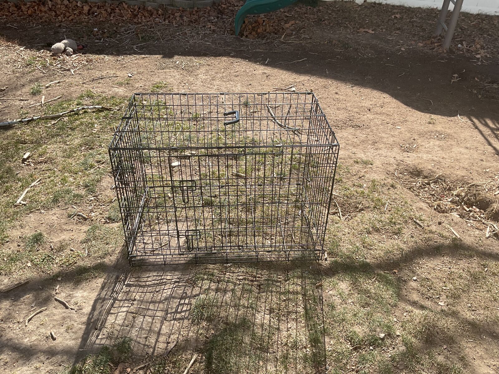 Includes large dog cage, igloo, leash, collar, shampoo, harness, food, food bowl, water bowl, and maze bowl.
