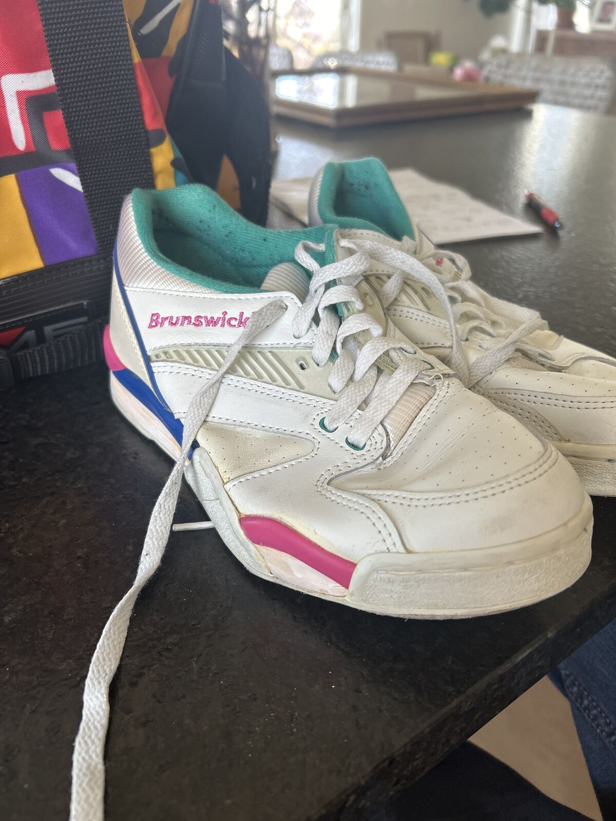 VenmoNew bag with Ebony Satelite ball 14lb. included with women size 9 Bowling shoes by Brunswick. There are some chips but no major dents or wear