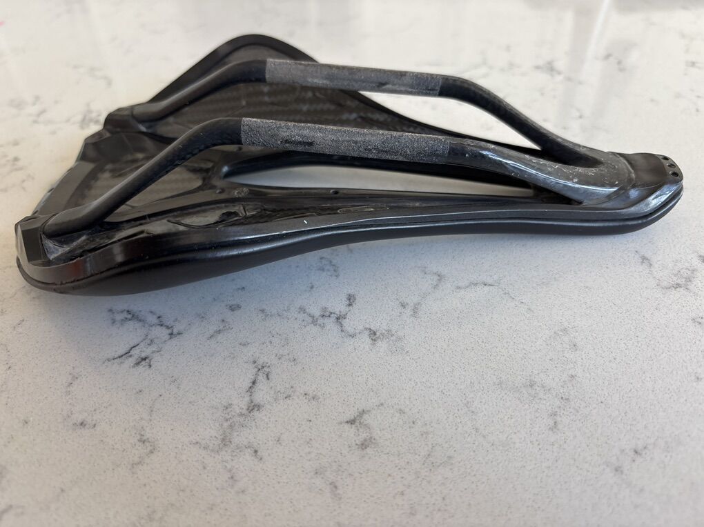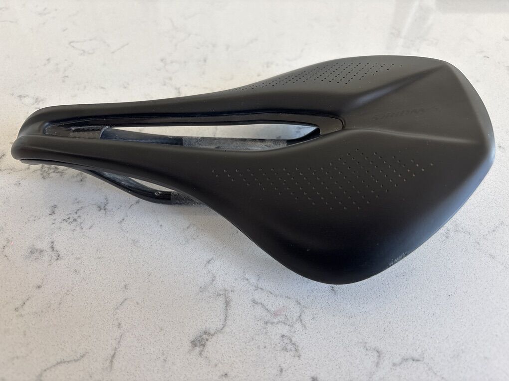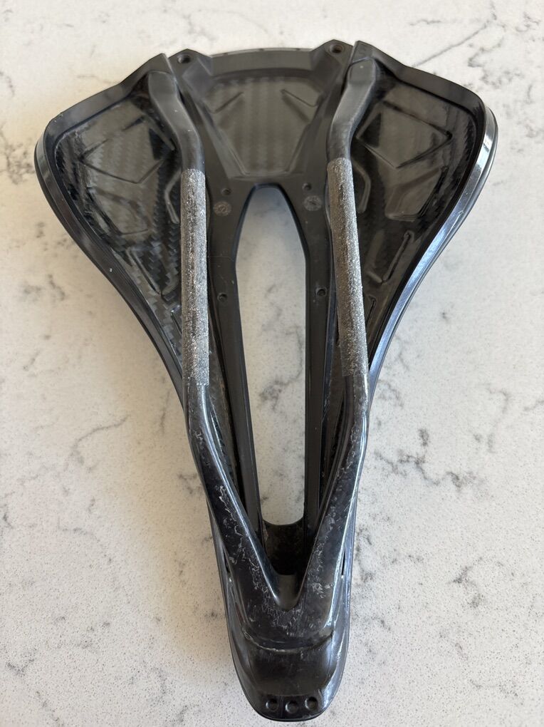 Specialized SWorks Power Saddle with Carbon Fiber Rails. This seat is in great condition minus a scuff or two and some signs of normal clamp use on the rails from being clamped. There are no cracks or soft spots in the rails that I have found. The saddle is almost 100 grams lighter than the new Specialized Power Pro Mirror “3d printed” saddle that retails for $275. On my scale it came in at a low weight of 155 grams! This was a $200 plus saddle before the new more expensive Mirror models came out which collect mud and other debris in its structure. I am asking for $150 or best offer cash only, no electronic payments will be accepted.