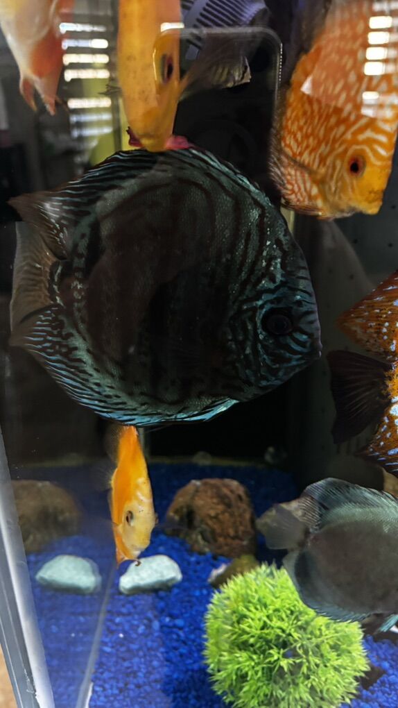 I have a Discus 6-1/2” very healthy Dark blue with red spot… Eating flake,brine shrimp, bloodworm Getting along with all my discus Serious buyer only….OBO