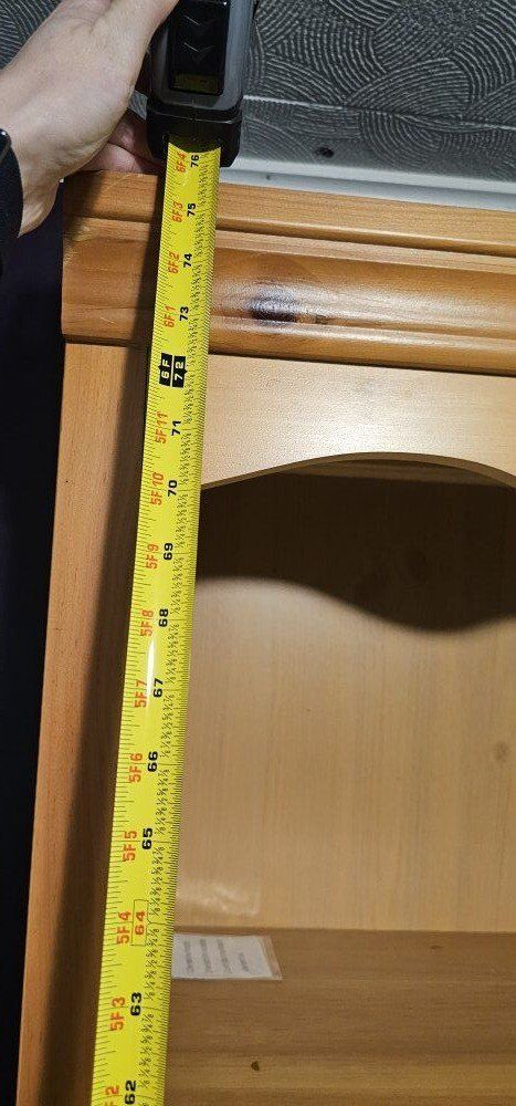 dresser stand dimension: 75.5" in height, just over 18" in depth, and 42" wide.