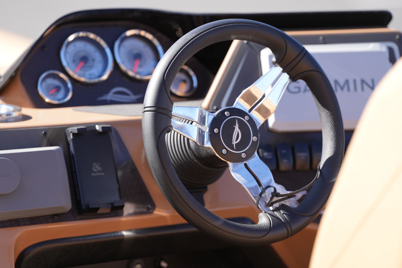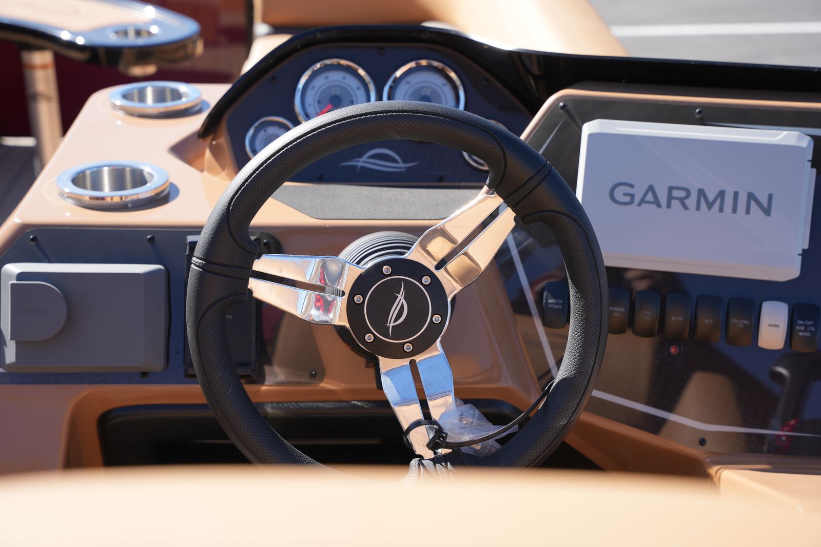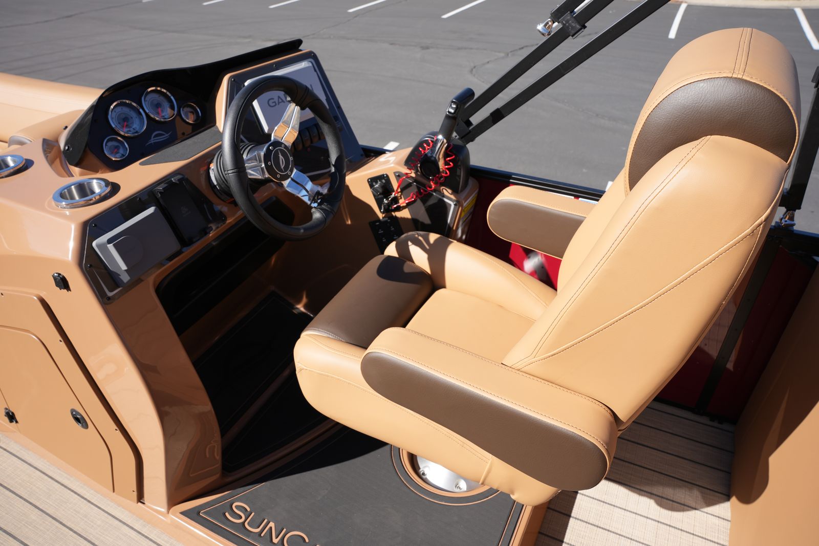 The helm feels purposeful and refined — easy to operate for new and experienced boaters alike.