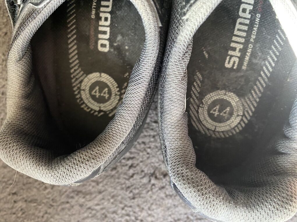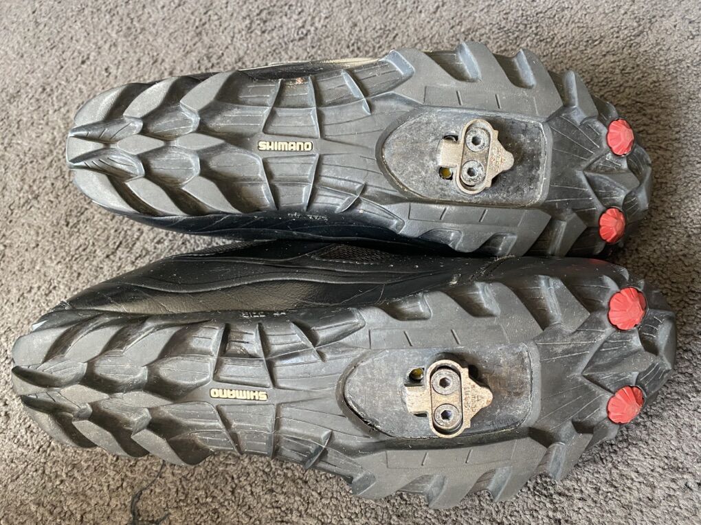 ApplePayShimano clip in cycle shoes with clips and peddles. Size 44 (equivalent to men’s size 9). $50 OBO.