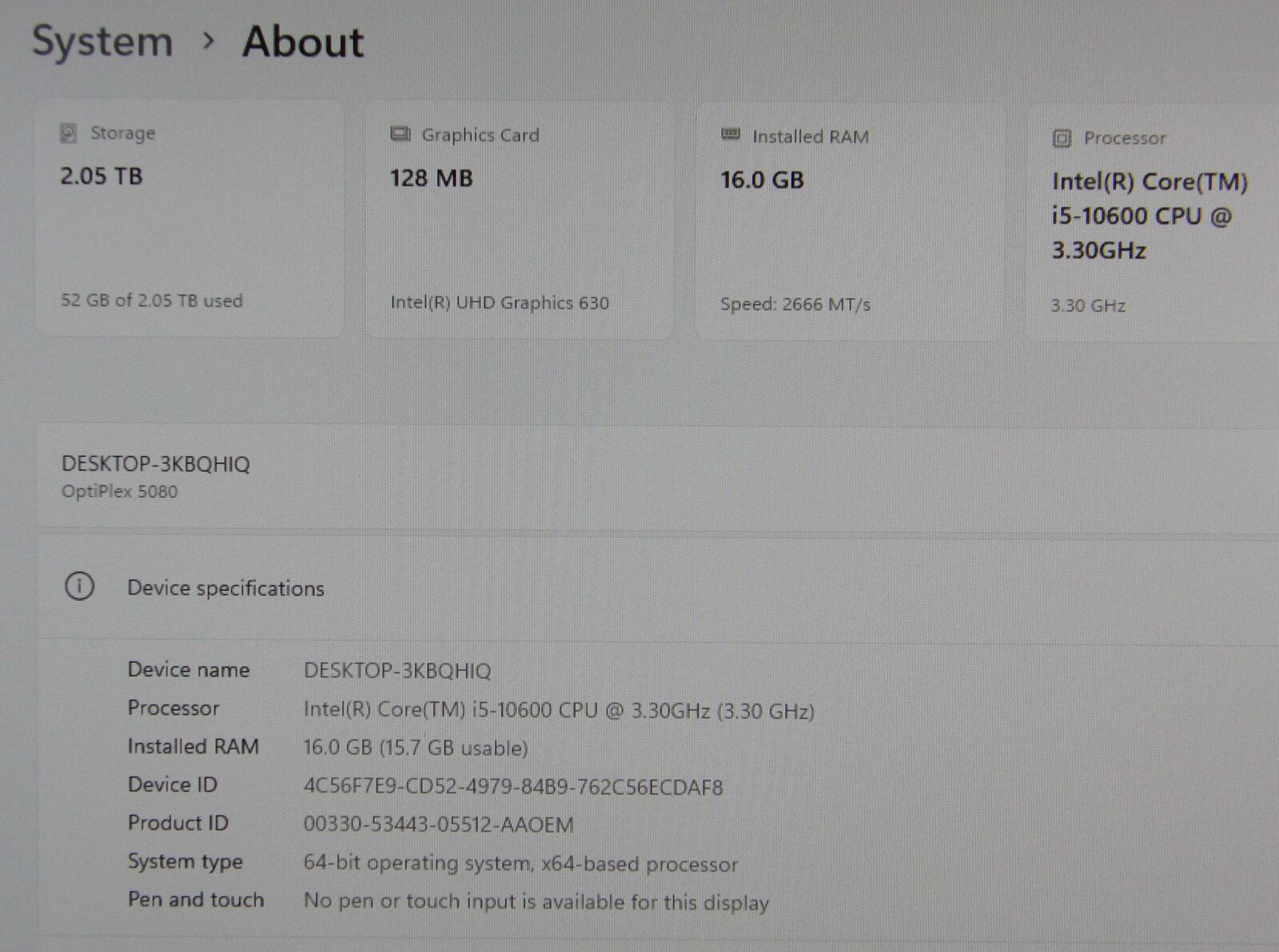 · GPU : Intel UHD Graphics 630