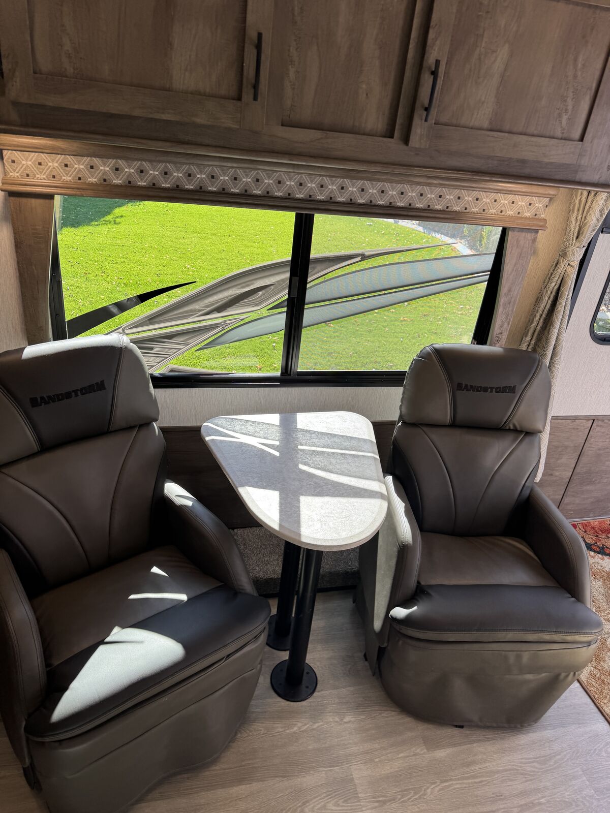 Zelle2022 Forest River 24-foot Sandstorm Toy Hauler. This travel trailer is in great condition with many improvements made. Also, just put $1,200 worth of 12-ply tires on it 3 months back. Not shown in picture (in toy hauler section back of trailer) is a second drop down queen bed and two bench seats and large table that have never been used but nice to have and all works off electric (no manual work to set up). It has fuel station, solar panels, one slide out, 2 batteries, 2 large propane tanks, large awning, TV, large fridge, freezer, power stabilizer jacks, outside speakers, outside propane BBQ plug, AC & furnace, oven, microwave, 3 burner stove top, nice custom queen master bed, great counter space & protective exterior armor guard from dealer (extra $1,527) to mention a few items. Paid $63,229 for it new and asking $42,000. Have original purchase receipt and the title in hand. Can call 208 - 3 two zero - 0 nine 00.