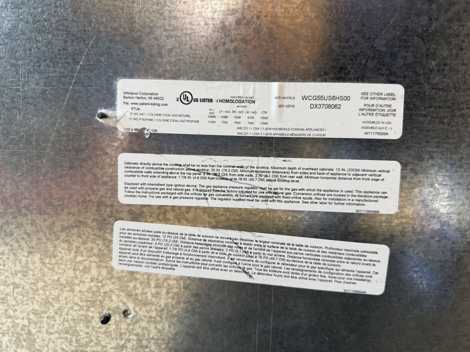 VenmoWhirlpool 5 burner Gas cooktop. used for a short time while waiting on an ordered cooktop that was delayed. In good condition.