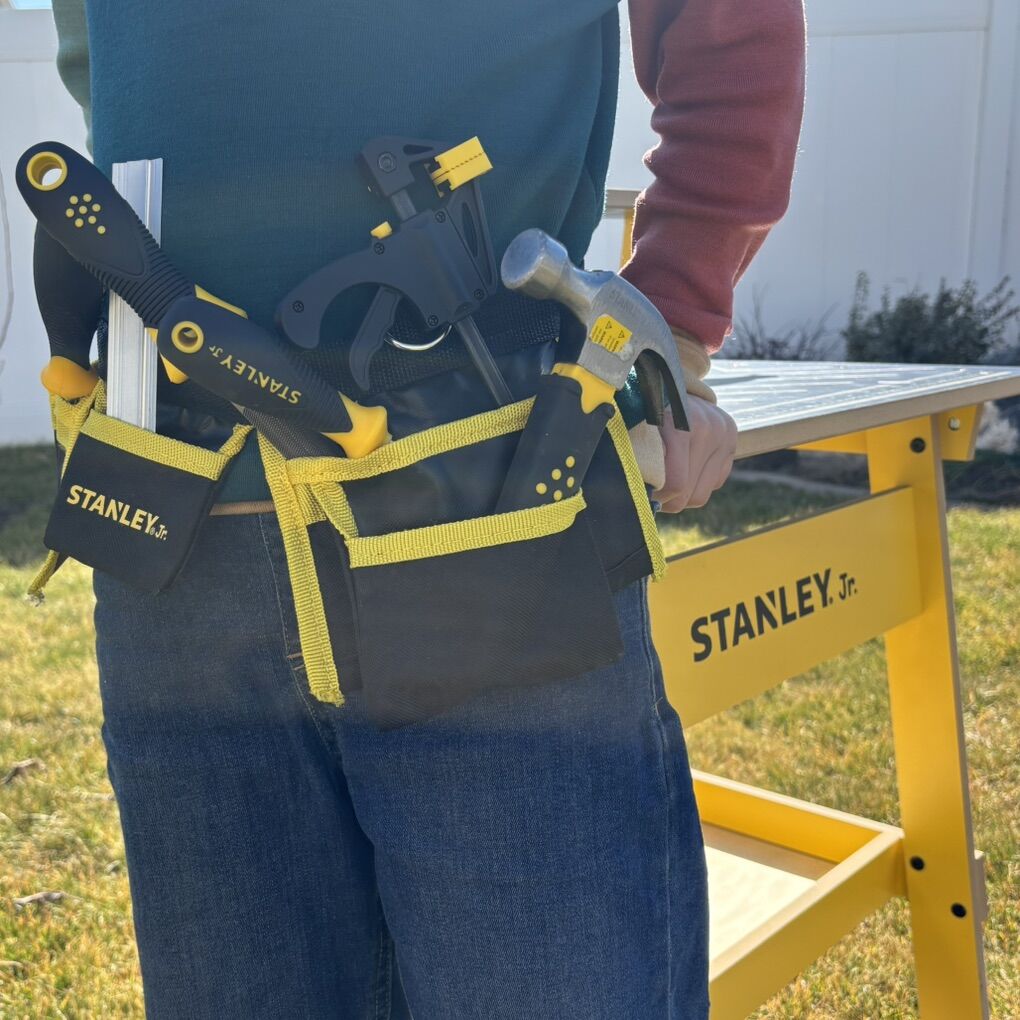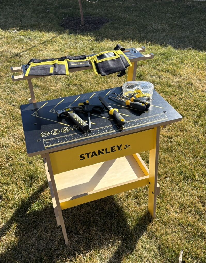 Stanley Jr Work Bench With Tools and tools belt. In very good condition, barely used.