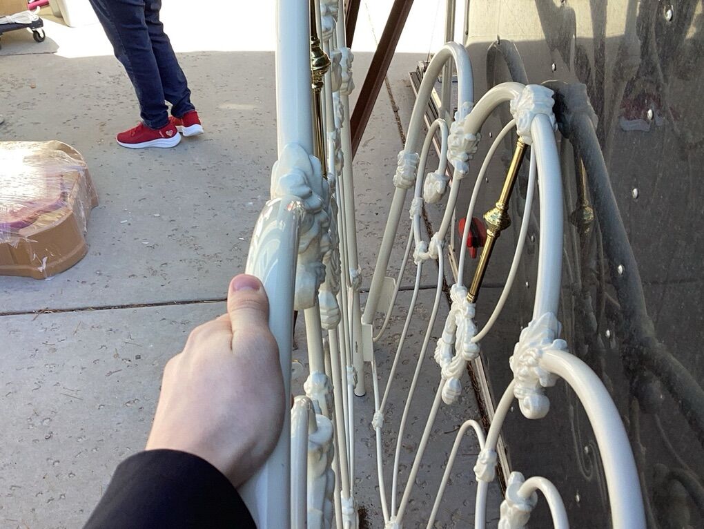VenmoThis bed frame it is white iron with brass it is in perfect condition these brand new are upwards to 1000$ we are selling for 250$ or best offer. Come get it!