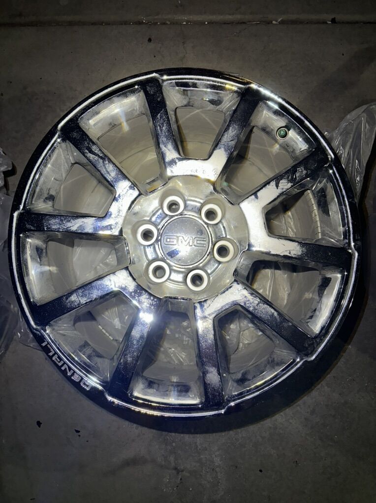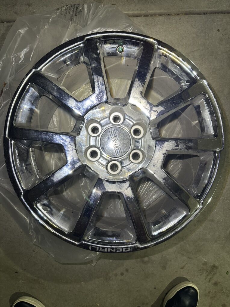20” GMC Denali wheels $500 for the set, OBO • Bolt pattern: 6x139.7 (6x5.5”) • Offset: +27 mm (OEM GMC Denali) • Center bore: 78.1 mm • Factory chrome finish • GMC center caps included