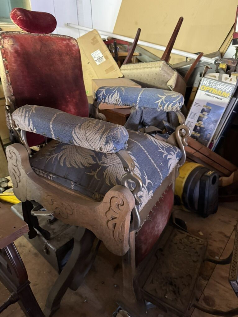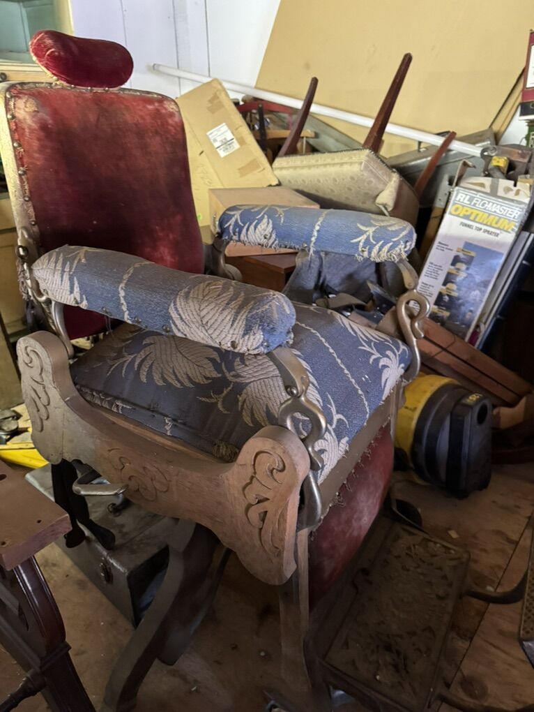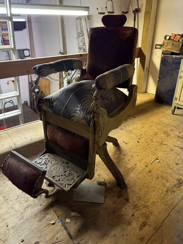 Details: • Early 1900s Koken barber chair • Original cast iron base & footrest • Unrestored / original condition • Heavy — bring help to load • Located in [your city]