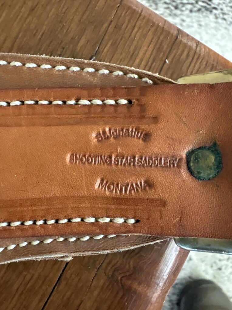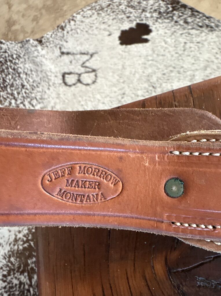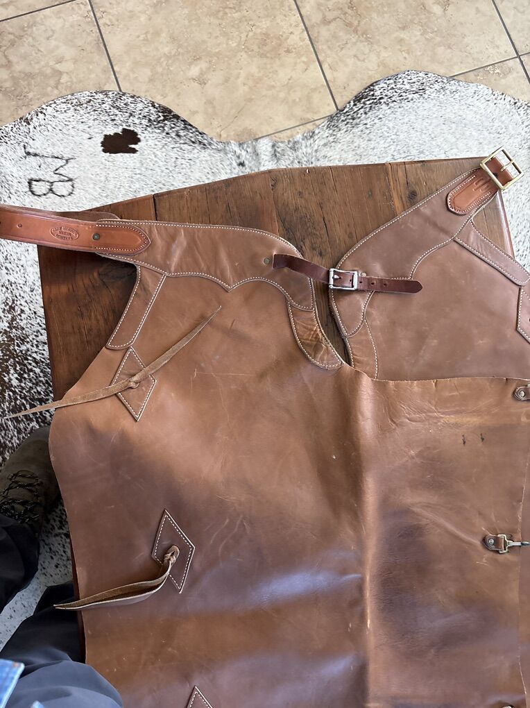 Heavy built batwing chaps by Jeff Morrow, Montana. Adjustable waist 28 to 34 inches. 44 long with 3 thigh straps. Shooting Star Saddlery St Ignatiaus Montana. Nice hand made chaps. Located 7 miles south of Logan. 200.00