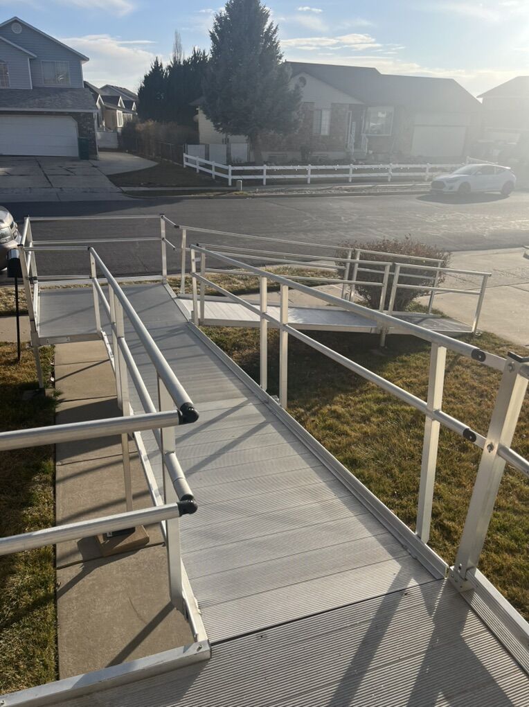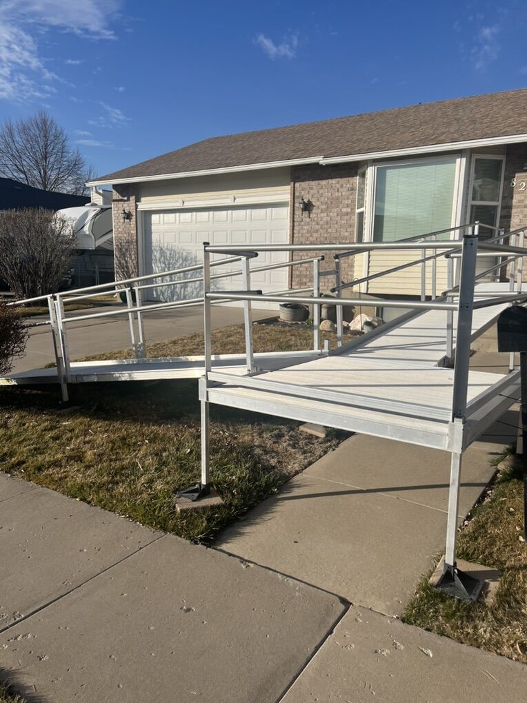 VenmoTwo sections of aluminum wheelchair ramps with handrail. Two 5 x 5 platforms and two 14 foot ramps with some extra pieces for transition from inside home to outside. Will not sale pieces of this will only sell all pieces as one set.