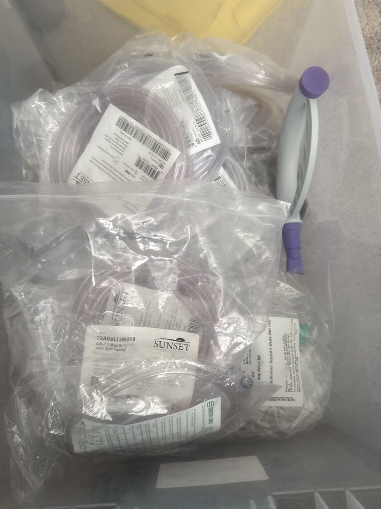 ApplePayInogen oxygen concentrator with 2 battery packs and charger. A tote of oxygen cannulas come with. As well as a backpack.