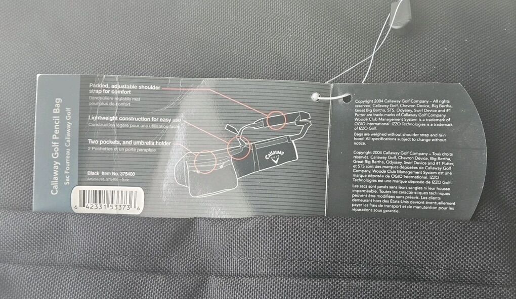 ApplePay95 OBO Brand new. Crafted for the golf enthusiast, the Callaway Golf Pencil Bag offers a sleek and functional design for your equipment. The bag features a robust nylon shoulder strap, ensuring comfort and durability during your rounds. Its black color is versatile, seamlessly blending with any golfer's style or attire.