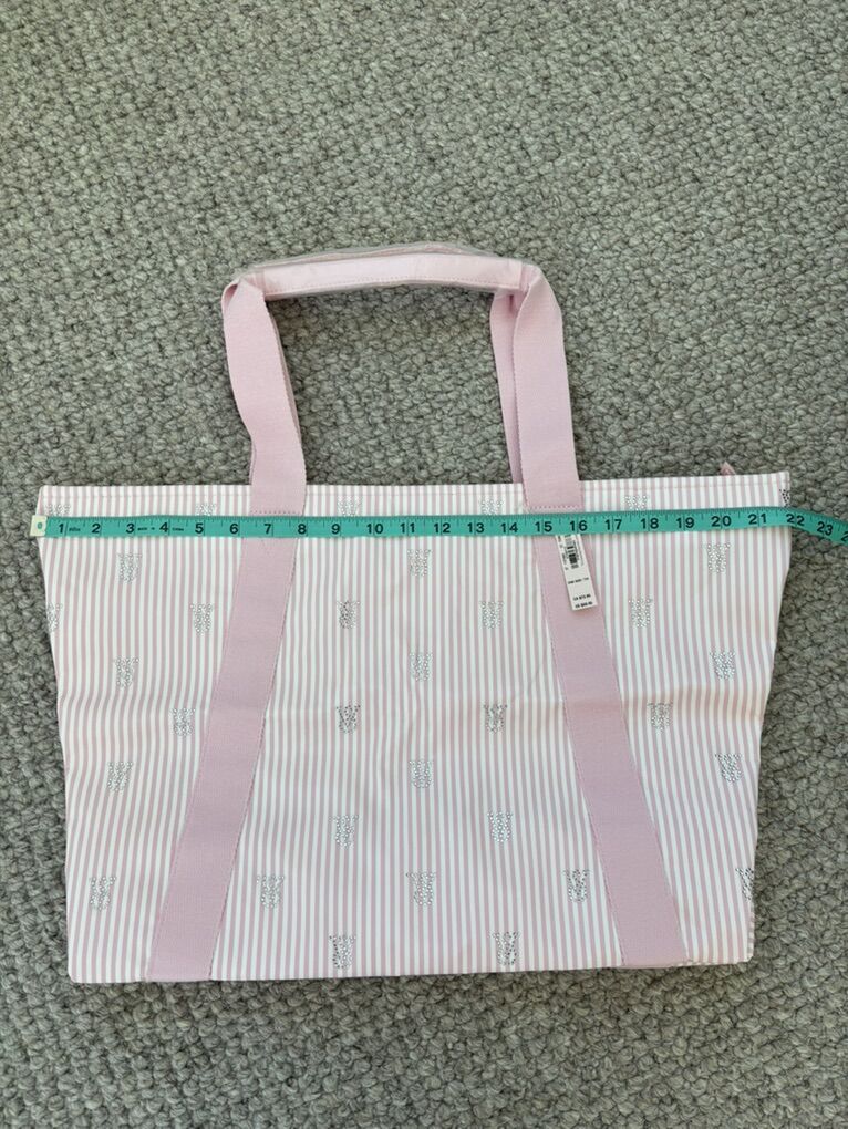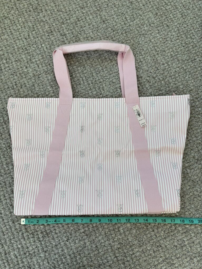VenmoVictoria's Secret Tote Pink & white stripes Rhinestone VS logo Zipper closure top Dimensions in pics