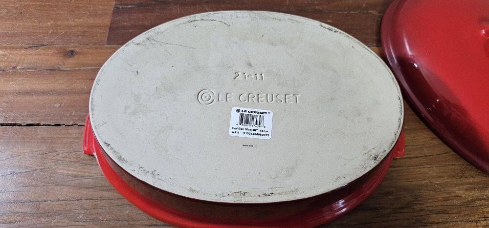GooglePayThis is new and unused. The bottom shows a little marking from the shelf that it sat on but it has never been baked in and is new unused I have two of these and don't need both. This is a current product and $135 new Bringing back vintage designs from Le Creuset's archives, the Heritage Stoneware collection is a durable, versatile choice for one-dish baking, serving and storing. This cocotte's oval shape is specifically designed for roasts and poultry as well as casseroles.