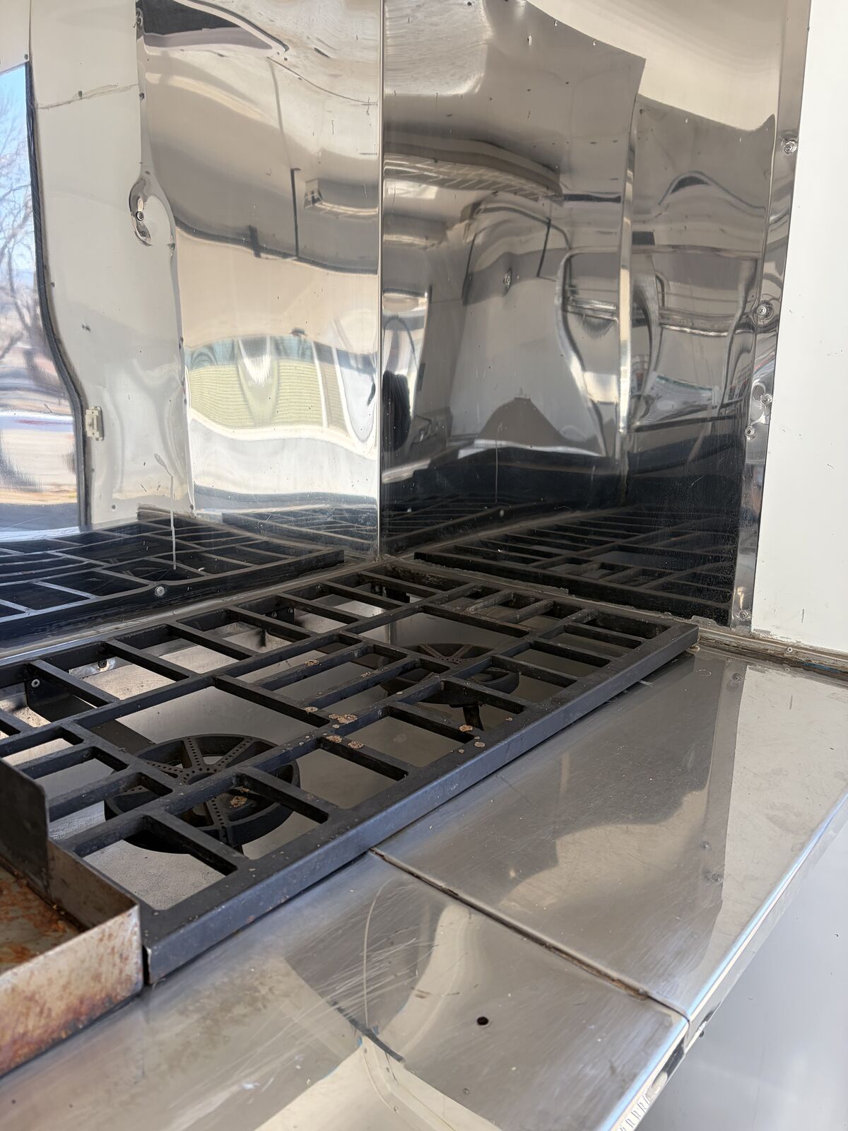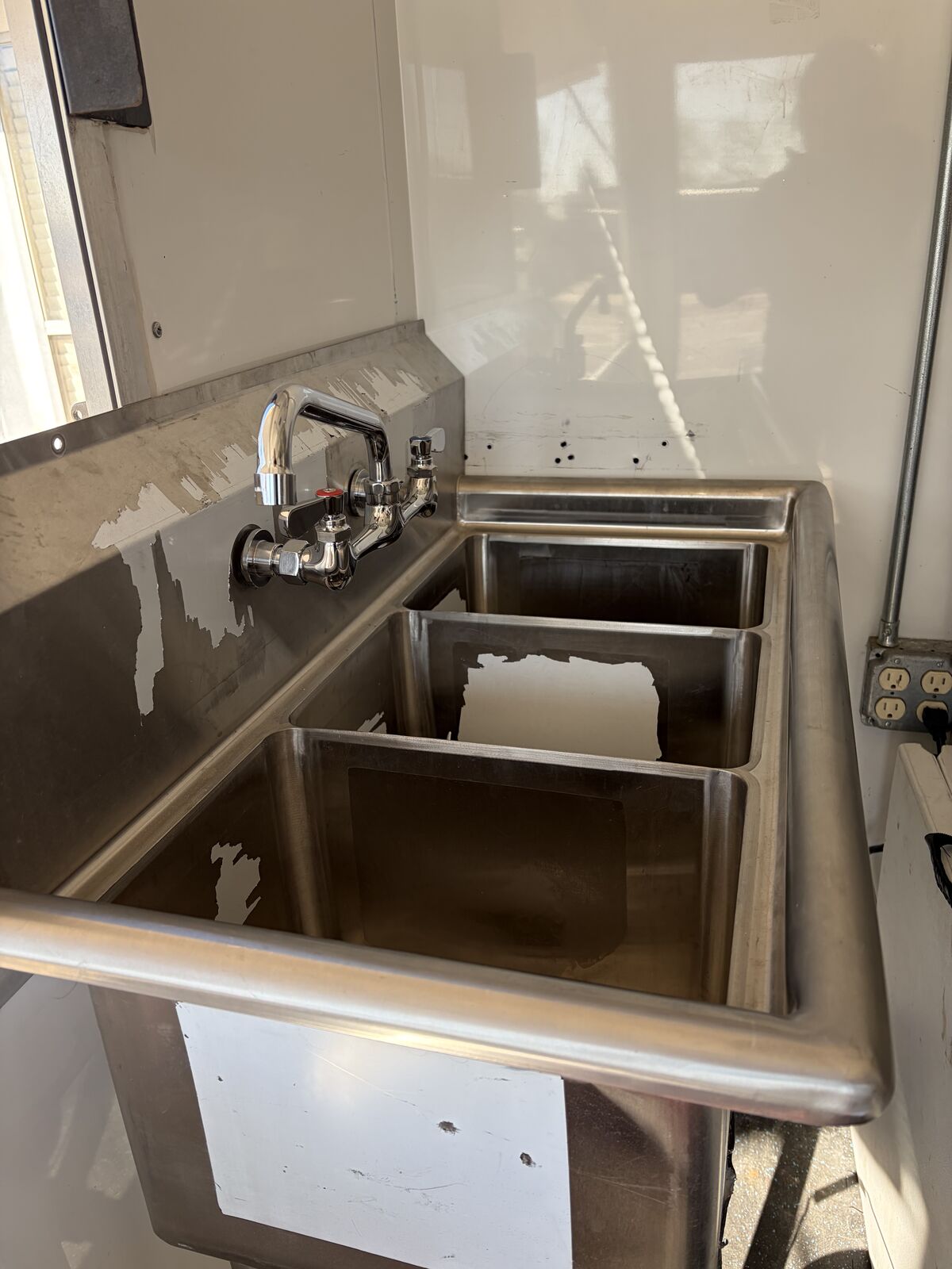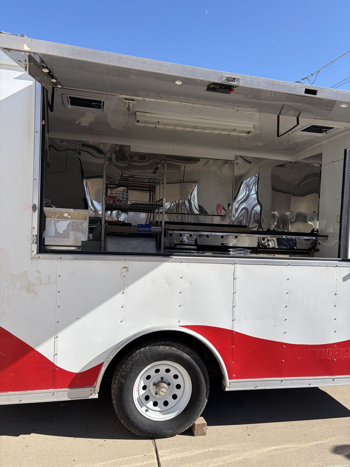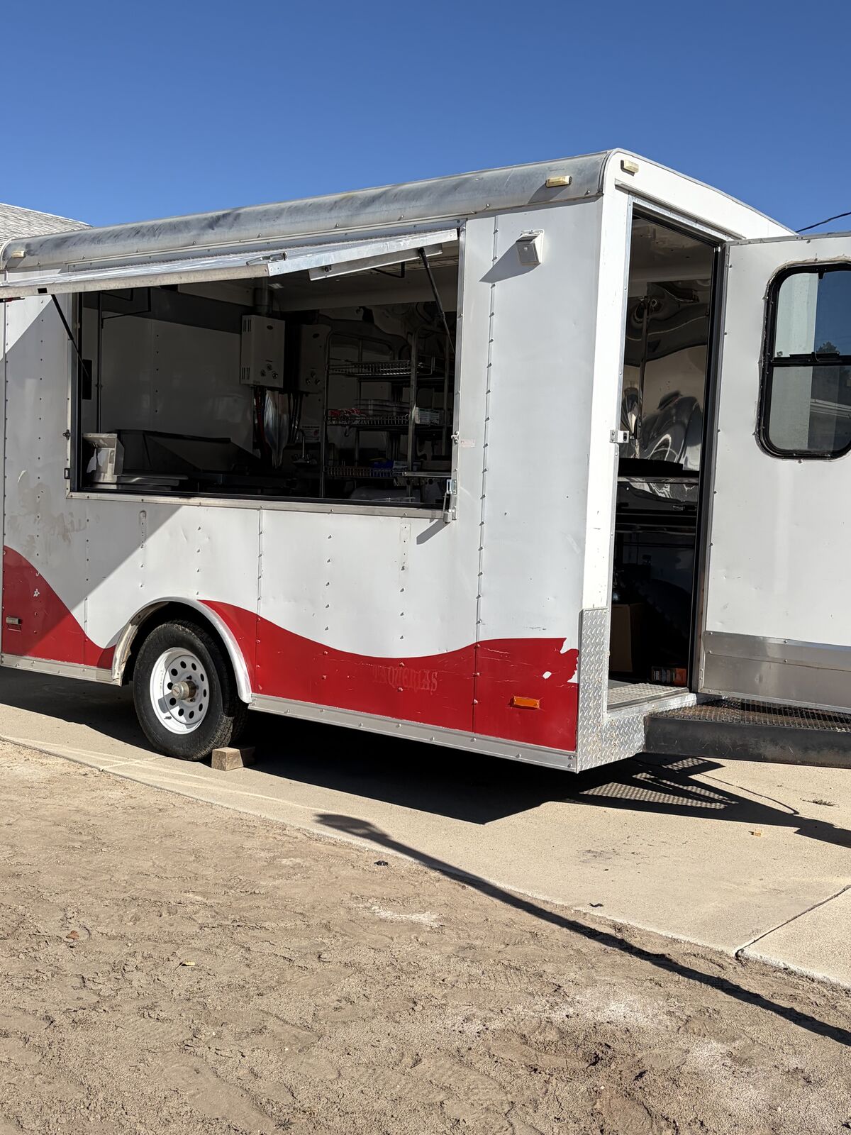 2 side by side Burners w/flat grill; 3compartment sink + handwashing station; Sandwich prep table; upright standing rack to hold supplies extra & misc; Fresh water/Gray water tanks; Propane rack/tank; tankless water heater. Asking $17,500.00 OBO