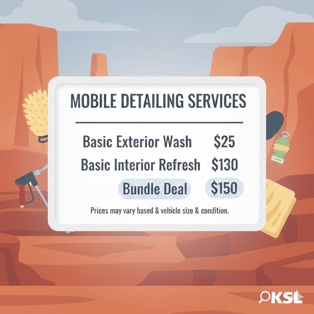 Professional Mobile Detailing – We Come To You! Stop wasting your afternoon waiting at a car wash. Get a showroom shine while you relax at home or stay productive at the office! I offer fully mobile, high-quality detailing services delivered with speed and precision. Our Services Basic Exterior Wash ($25) Hand wash and dry. Wheel and tire cleaning. Exterior glass streak-free finish. Basic Interior Refresh ($130) Deep vacuuming (carpets, mats, and seats). Thorough wipe-down of all surfaces (dash, console, door panels). Interior glass and mirror cleaning. Door jambs cleaned. The Bundle Deal ($150) – BEST VALUE! Get the full treatment! Combines both the Exterior Wash and Interior Refresh. Save $5 and get your car looking brand new inside and out. Why Choose Us? 100% Mobile: We bring the service to your driveway or parking lot. Fast & Efficient: We respect your time and provide quick turnarounds without cutting corners. Quality Guaranteed: High-attention to detail on every square inch.