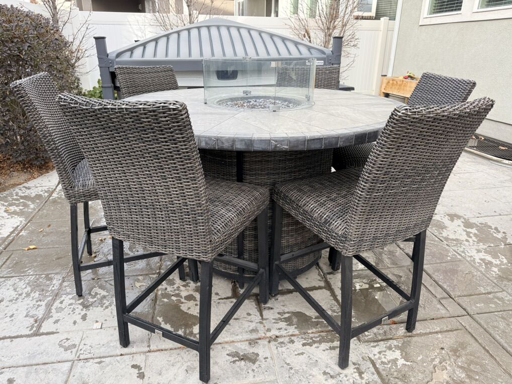 VenmoOutdoor Patio Set With Built In Fire Pit 6 chairs Spot for propane tank